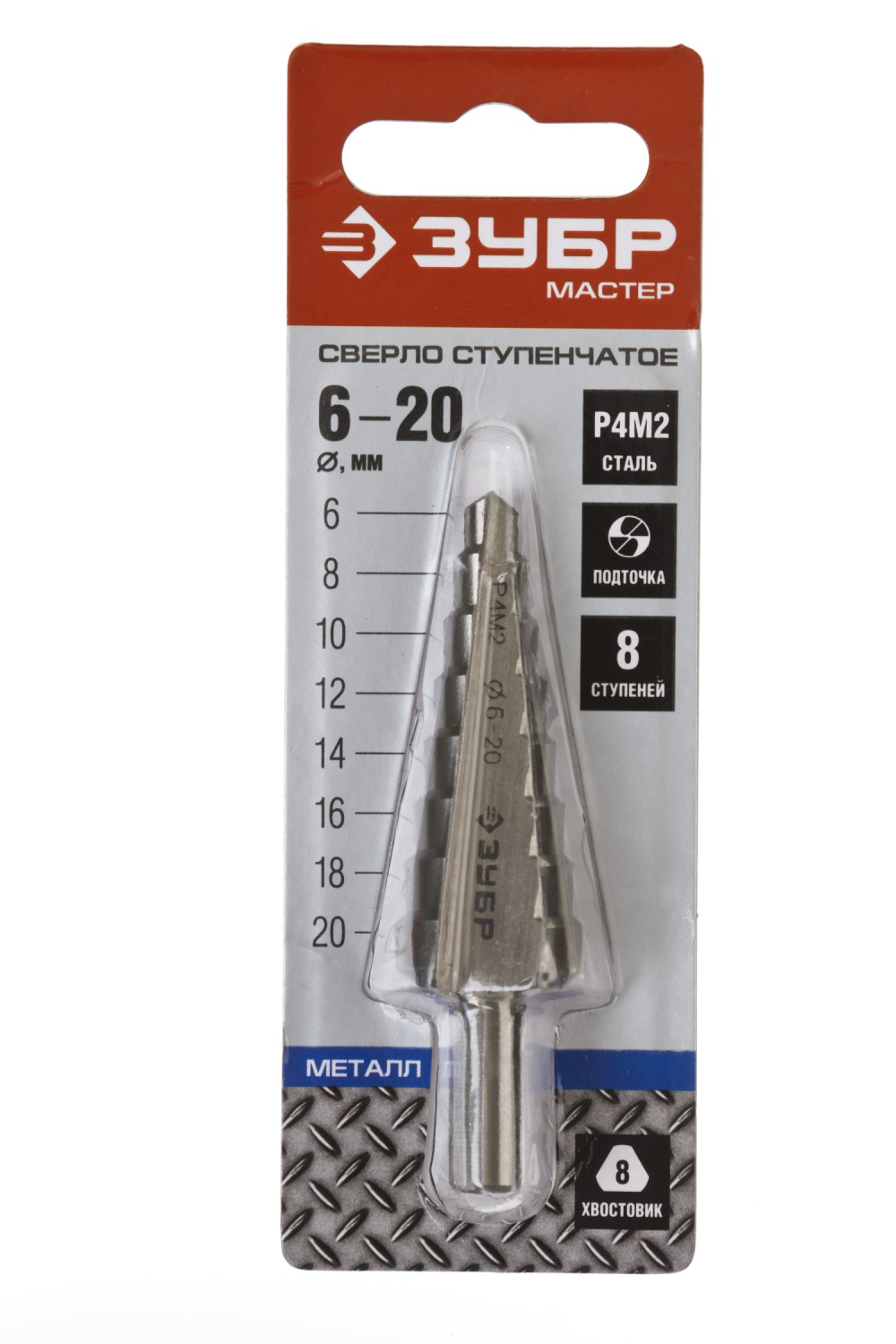 ЗУБР 6-20 мм, 8 ступеней, сталь Р4М2, ступенчатое сверло (29665-6-20-8)