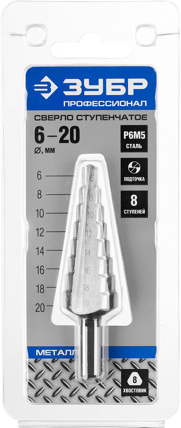 ЗУБР 6-20 мм, 8 ступеней, сталь Р6М5, ступенчатое сверло, Профессионал (29670-6-20-8)