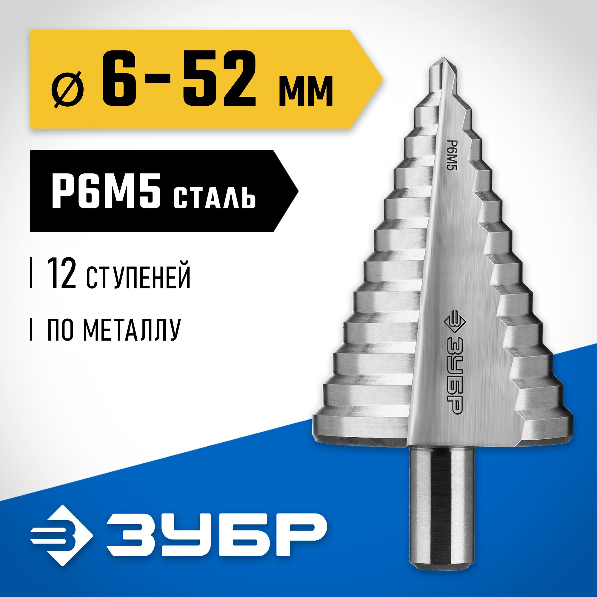 ЗУБР 6-52 мм, 12 ступеней, сталь Р6М5, ступенчатое сверло, Профессионал (29670-6-52)