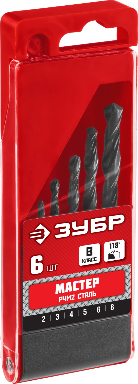 ЗУБР 6 шт, (2-8 мм), сталь Р4М2, класс В, набор сверл по металлу (29605-H6)