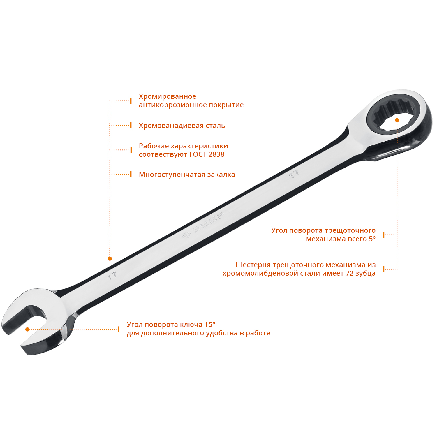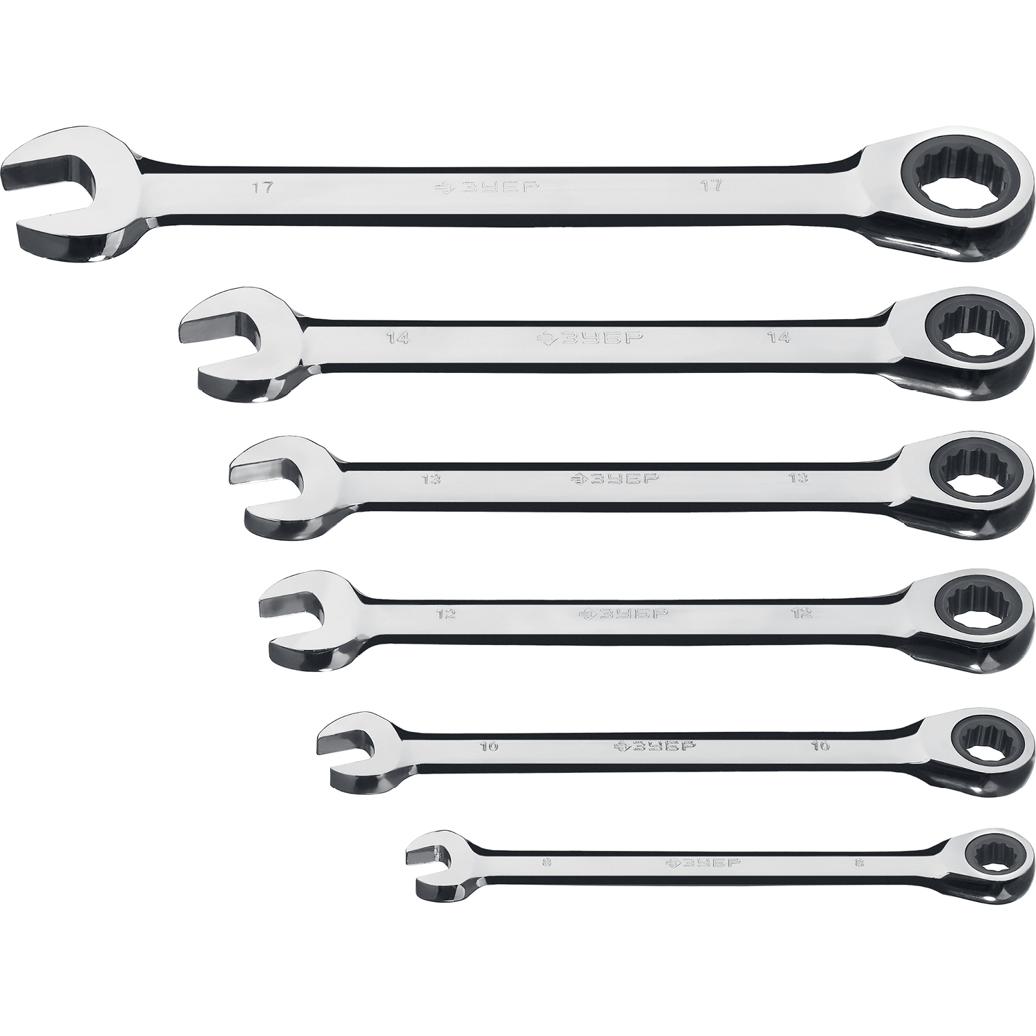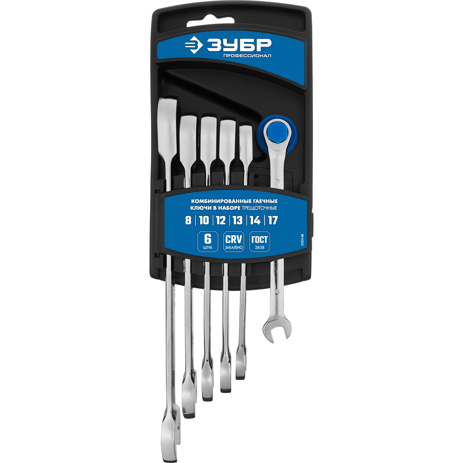 ЗУБР 6 шт, 8 - 17 мм, набор комбинированных трещоточных гаечных ключей, Профессионал (27074-H6)