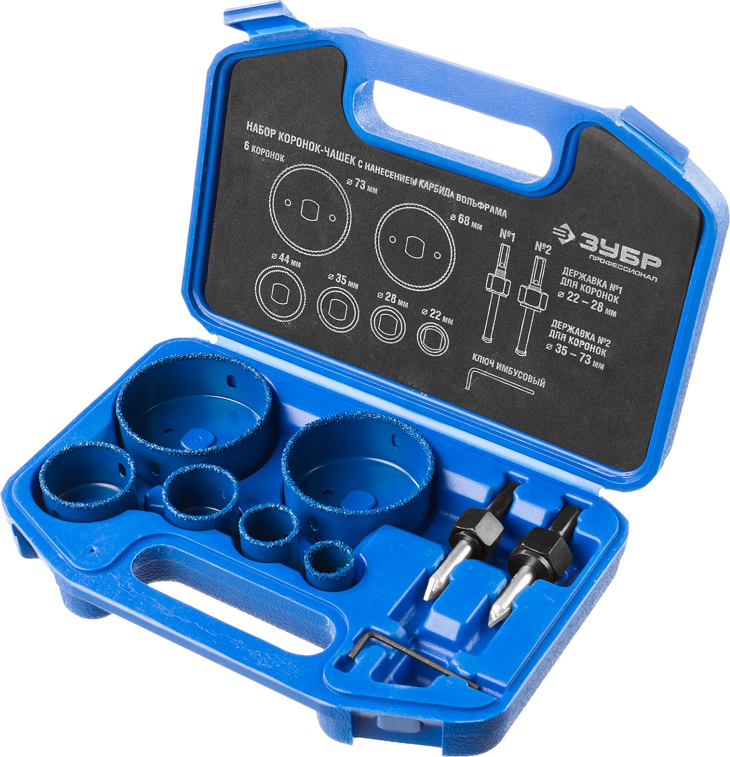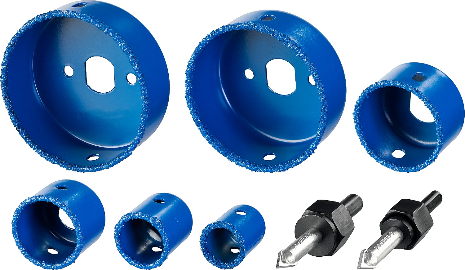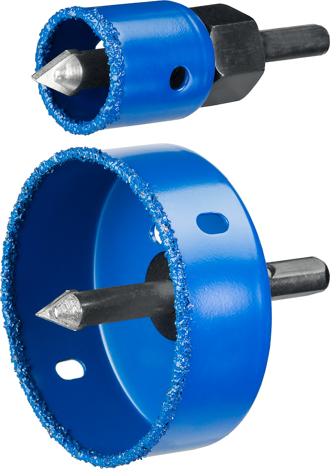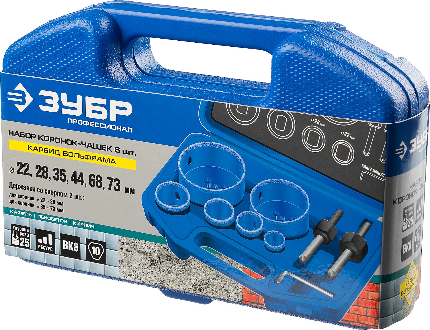 Коронки-чашки с нанесением карбида вольфрама изготовлены из высокопрочной стали, имееют более широкий размерный ряд чем кольцевые коронки и позволяют сверлить средние и большие отверстия, с глубиной сверления до 25 мм.