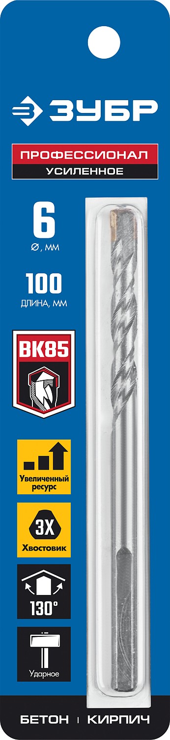 Сверла по бетону ЗУБР Профессионал - надежный и проверенный инструмент в быту и строительстве. Применяются для работ по бетону, граниту, природному и искусственному камню, кирпичной кладке.