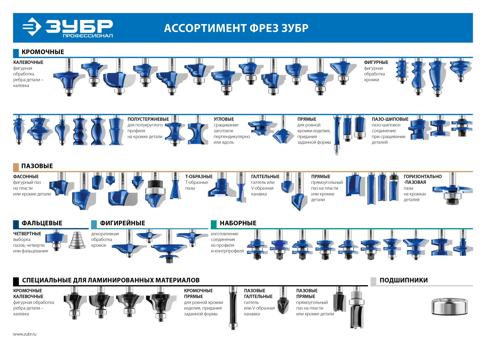 Используется на фрезерных станках и ручных фрезерах при фрезеровании отверстий, столярных изделий, предметов интерьера, а также реставрационных работах и внутренней отделке.
