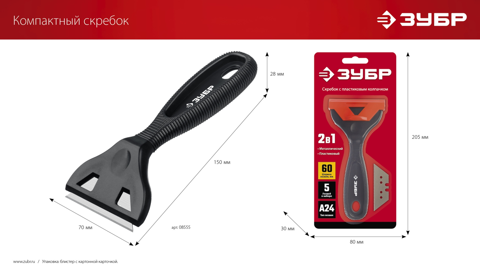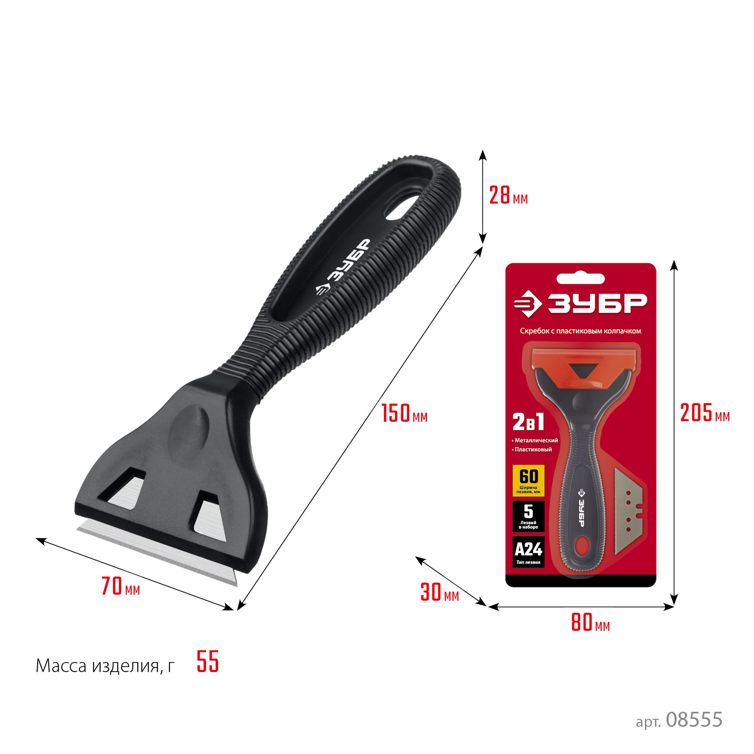 Скребок предназначен для зачистки поверхностей от различных загрязнений. Сменное пластиковое лезвие в комплекте для зачистки деликатных поверхностей