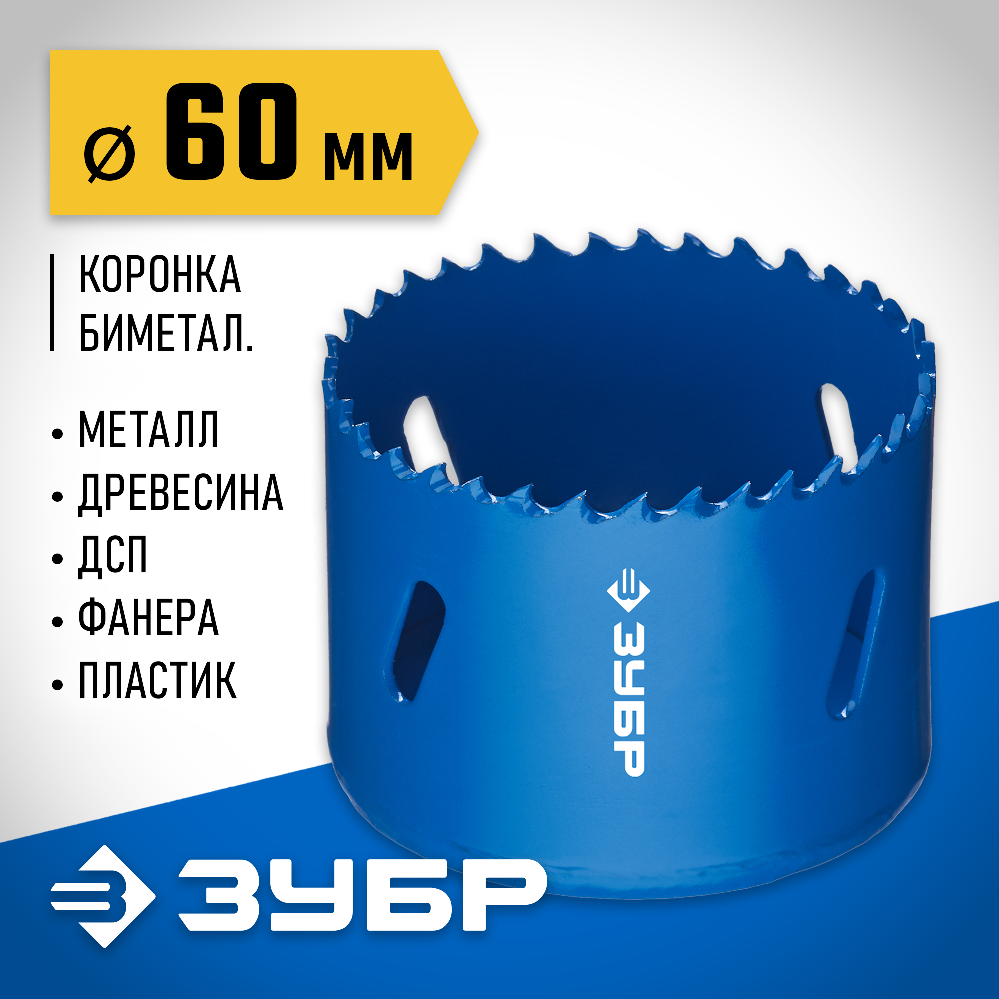 ЗУБР 60 мм, сталь Р6М5, биметаллическая коронка (29531-060)