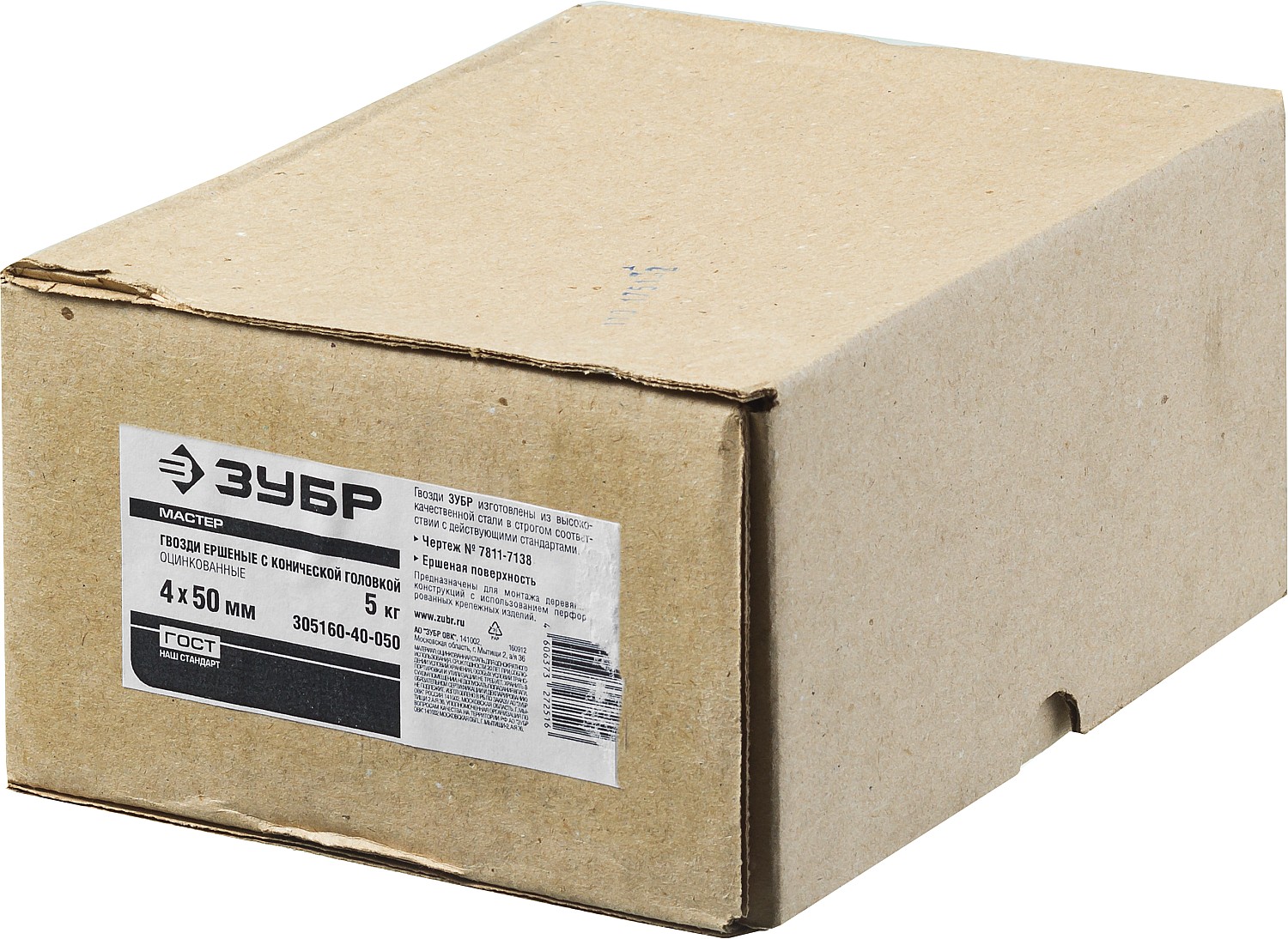 ЗУБР 60 x 4 мм, цинк, 5 кг, ершеные гвозди с конической головкой (305160-40-060)