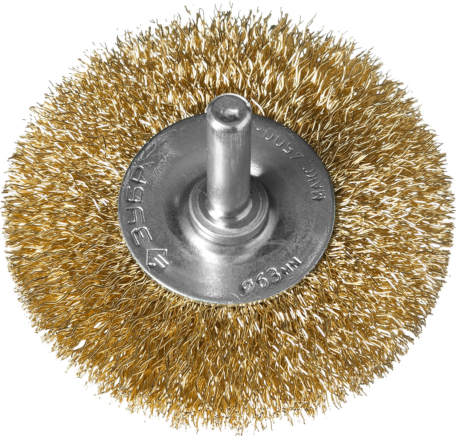 ЗУБР 63 мм, витая стальная латунированная проволока 0.3 мм, щетка дисковая для дрели, Профессионал (3520-063)
