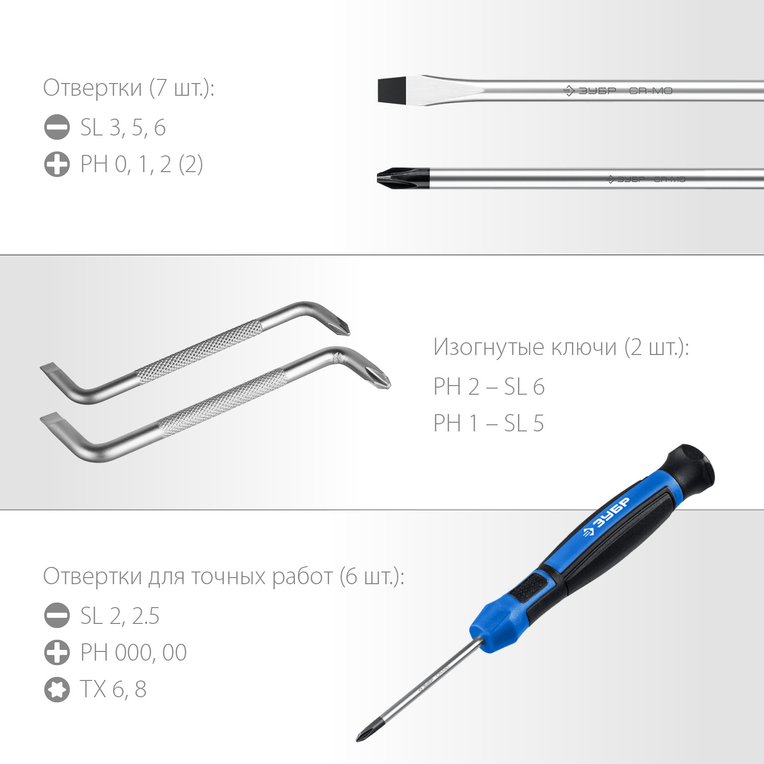 - Стержни отверток и биты изготовлены из хромомолибденовой стали и закалены по специальной технологии