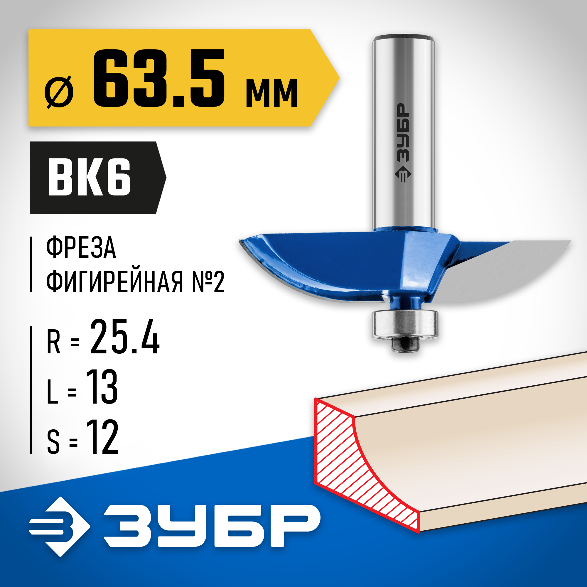 ЗУБР 63.5 x 13 мм, радиус 25.4 мм, фреза фигирейная №2, Профессионал (28761-63.5)