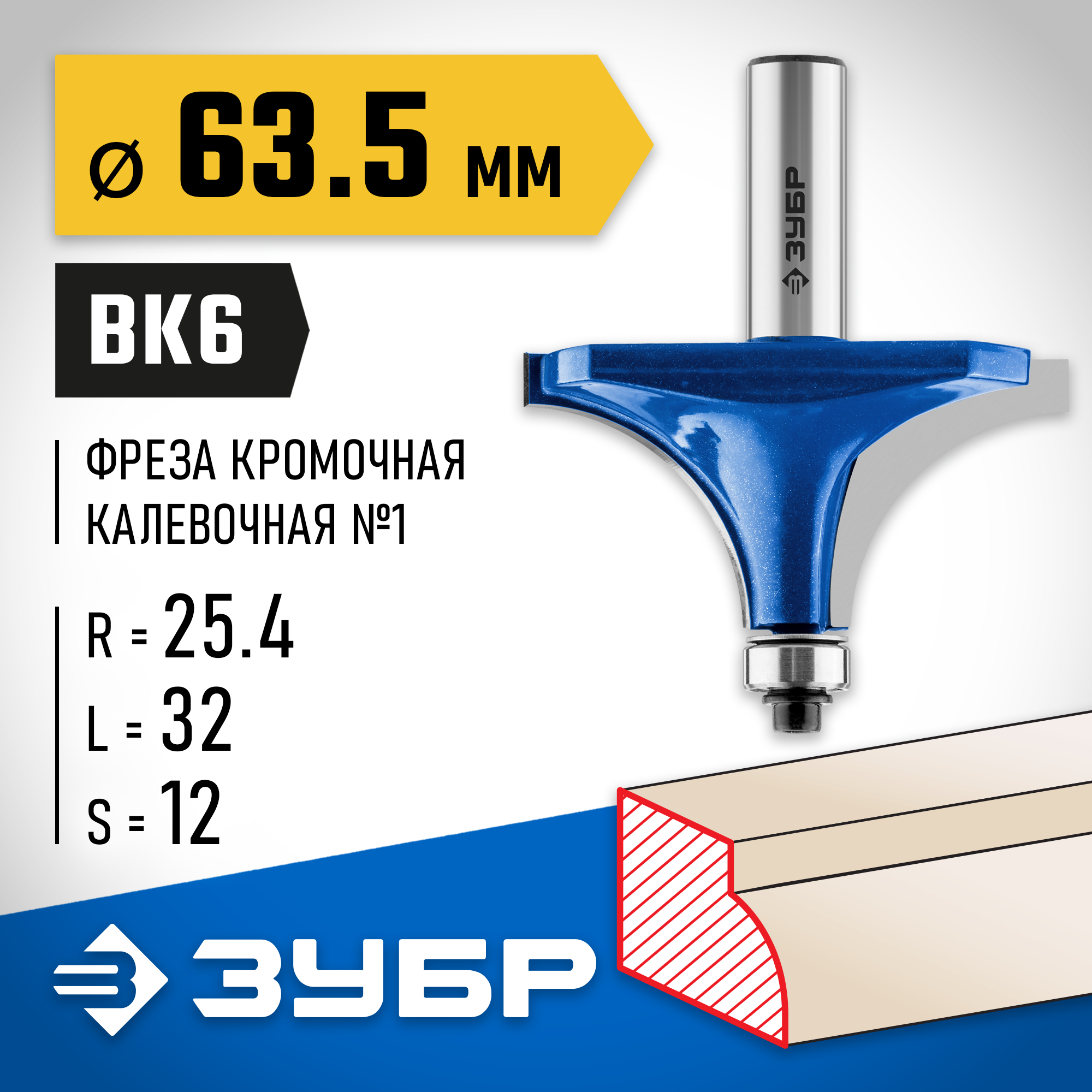 ЗУБР 63.5 x 32 мм, радиус 25 мм, фреза кромочная калевочная №1, Профессионал (28701-63.5)