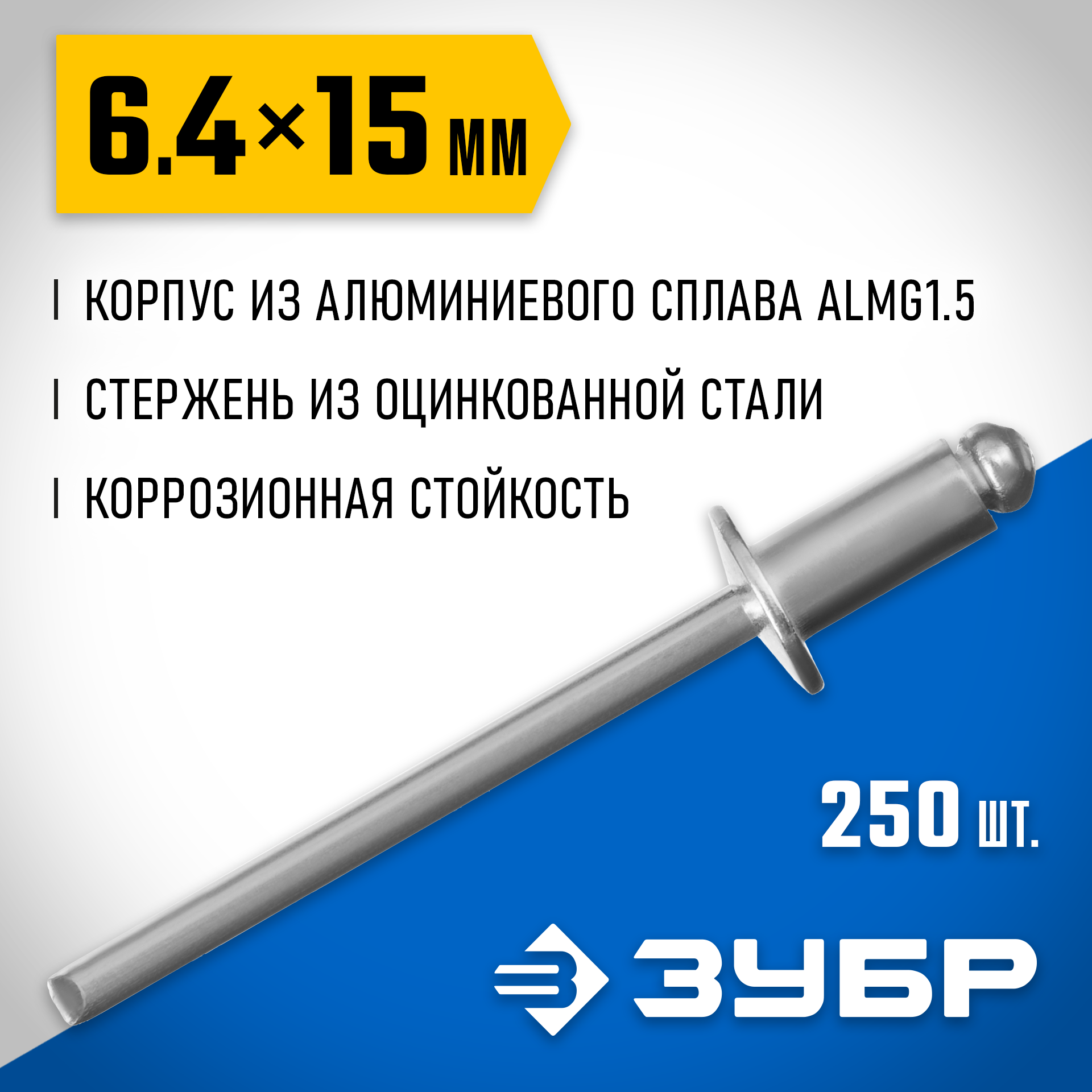 ЗУБР 6.4 x 15 мм, 250 шт, алюминиевые заклепки, Профессионал (31310-64-15)