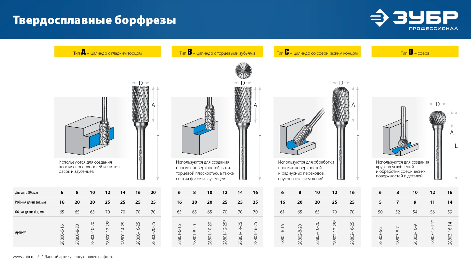 Твердосплавные борфрезы ЗУБР обеспечивают высокую производительность и могут использоваться для обработки различных материалов