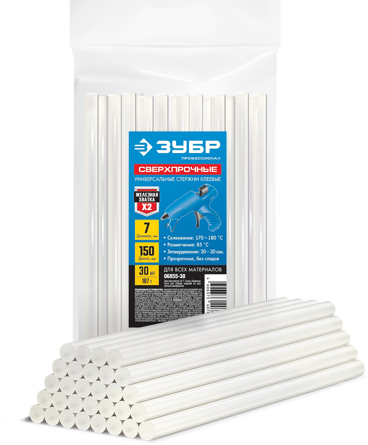 ЗУБР 7 х 150 мм, 30 шт, сверхпрочные прозрачные клеевые стержни, Профессионал (06855-30)