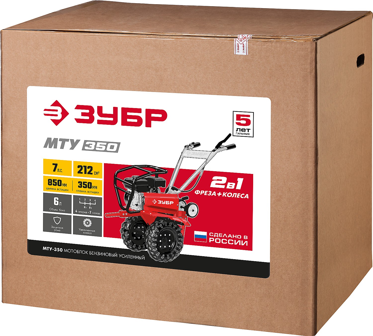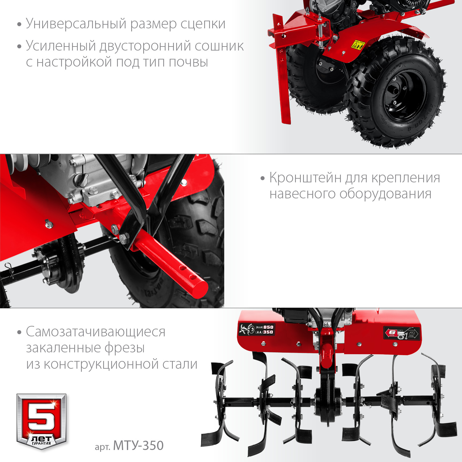 - 4 скорости вперед (основная и повышающая) и 2 назад позволяют комфортно работать на любых типах почвы