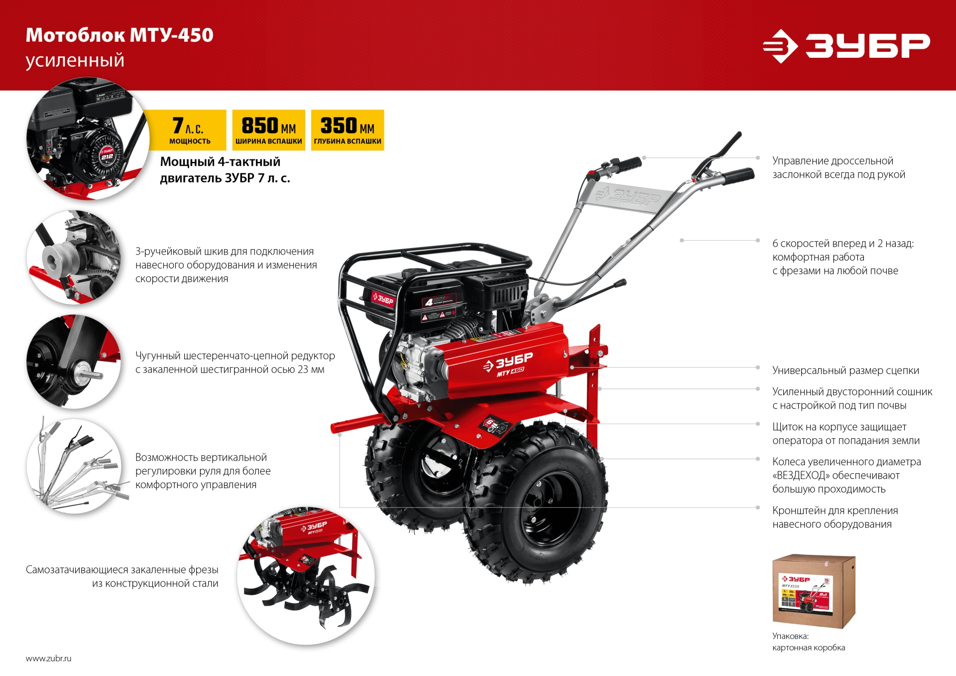 - Конструкция мотоблока позволяет использовать его с различными навесными оборудованием