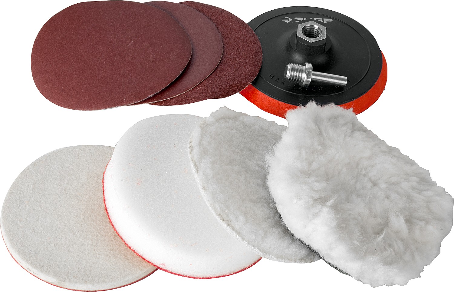 Набор применяется при проведении полировально-шлифоваьных работ по дереву, металлу и лакокрасочным покрытиям c использованием дрели или УШМ.