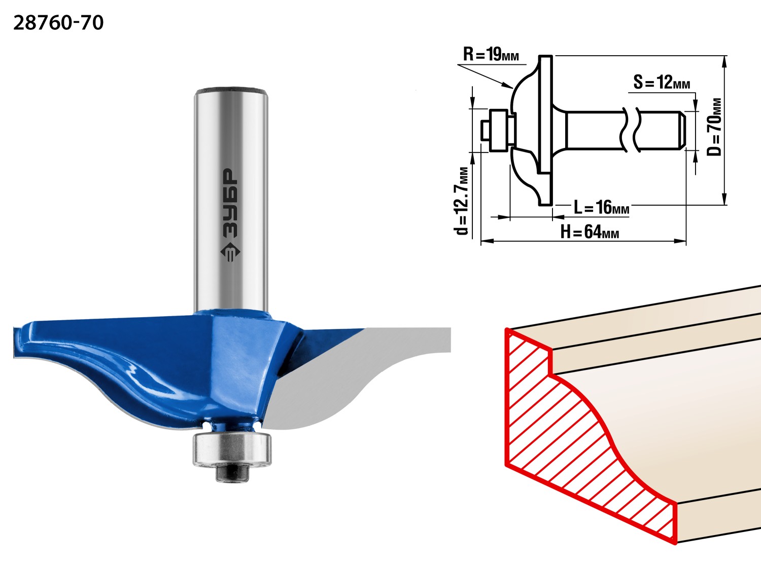 ЗУБР 70 x 16 мм, радиус 15.8 мм, фреза фигирейная №1, Профессионал (28760-70)