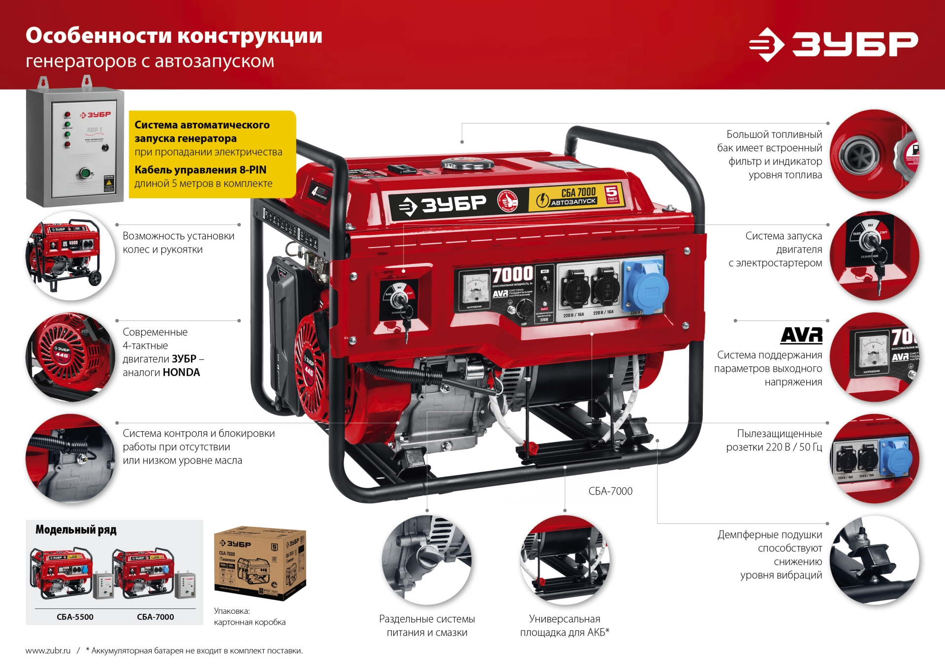- Двигатели ЗУБР производятся по японским технологиям и аналогичны легендарным двигателям HONDA ресурс всего генератора 1500 часов