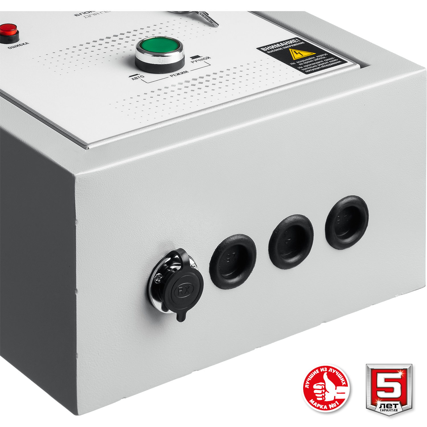 - Блок автоматического запуска определяет пропадание напряжения внешней сети и мгновенно запускает генератор в работу без участия человека