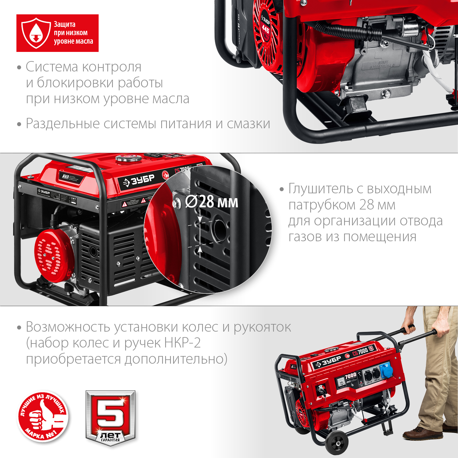 • Двигатели ЗУБР производятся по японским технологиям и аналогичны легендарным двигателям HONDA ресурс всего генератора 1500 часов