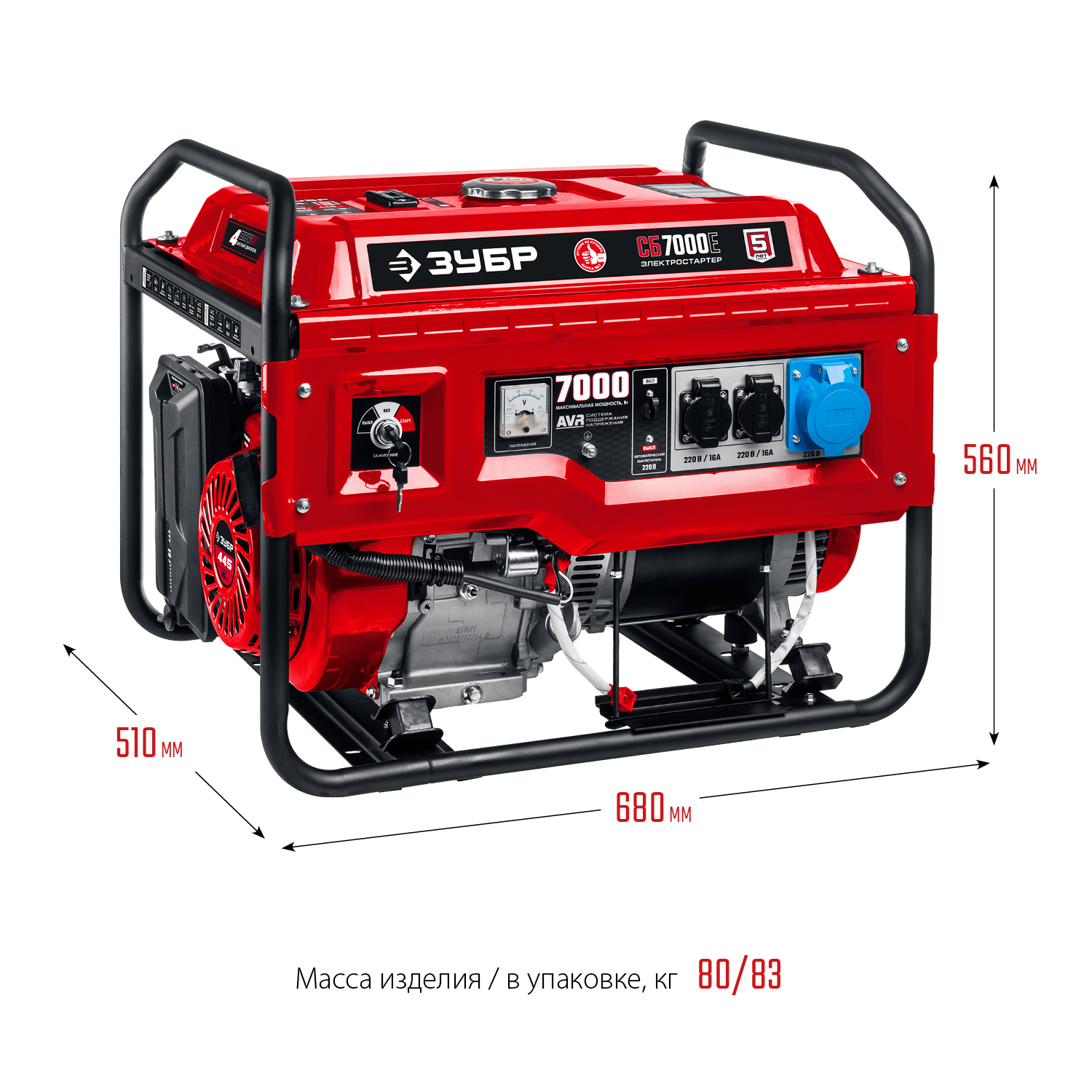 ЗУБР 7000 Вт, бензиновый генератор с электростартером (СБ-7000Е)