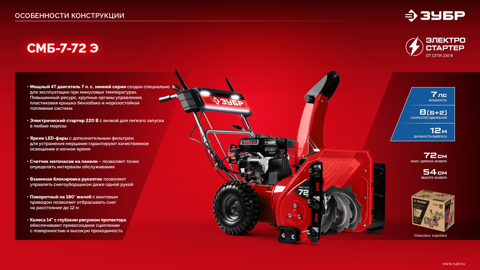 Универсальный и мощный снегоуборщик ЗУБР предназначен для эффективной очистки территории вокруг вашего дома. Оснащён зимним четырехтактным двигателем WINTER PRO, разработанным для надёжной работы в самых сложных зимних условиях.