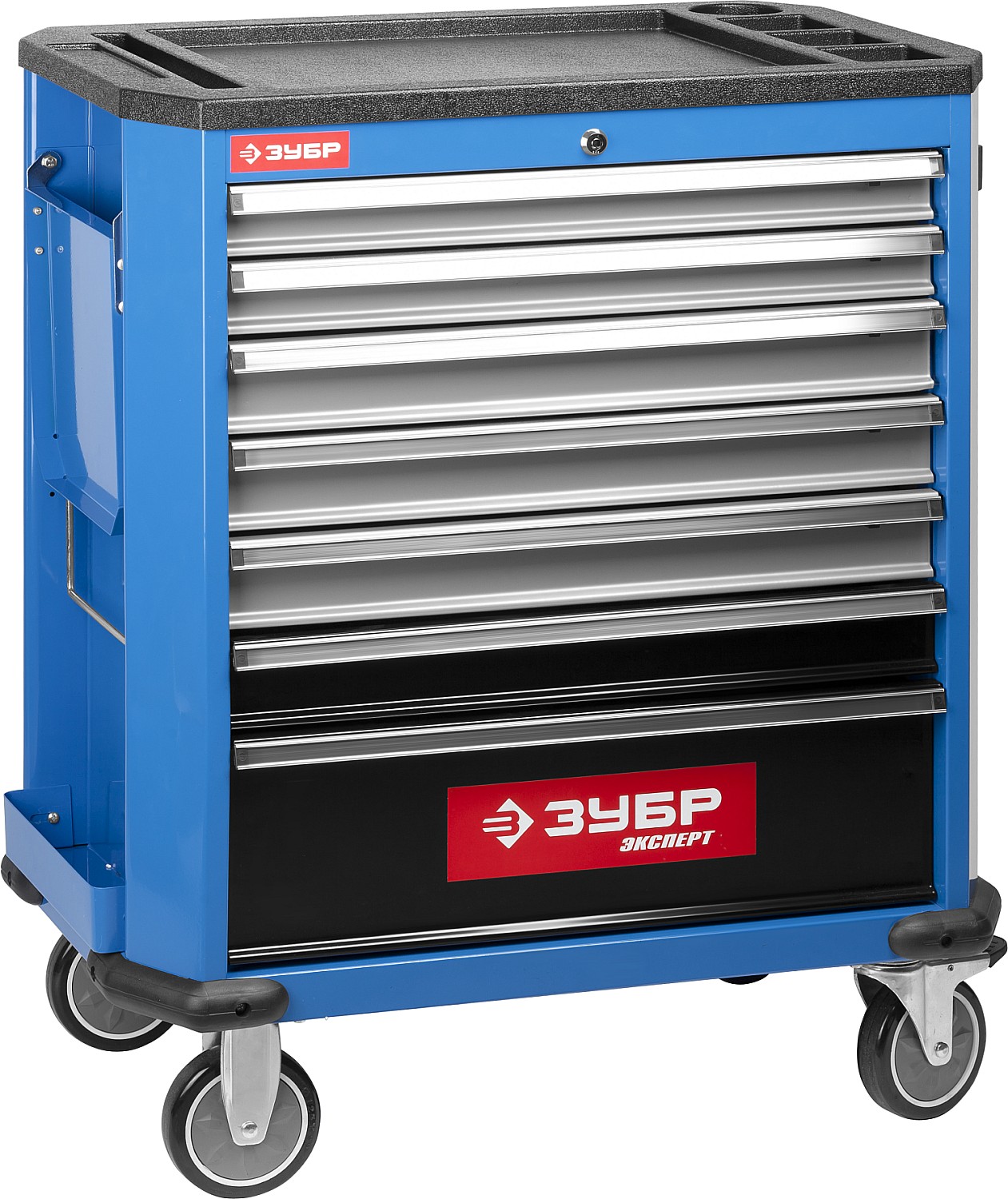 Профессиональная тележка ЗУБР позволит Вам комфортно организовать рабочее место с легким доступом ко всем инструментам. При необходимости Вы можете транспортировать его, а так же использовать ключи для безопасности