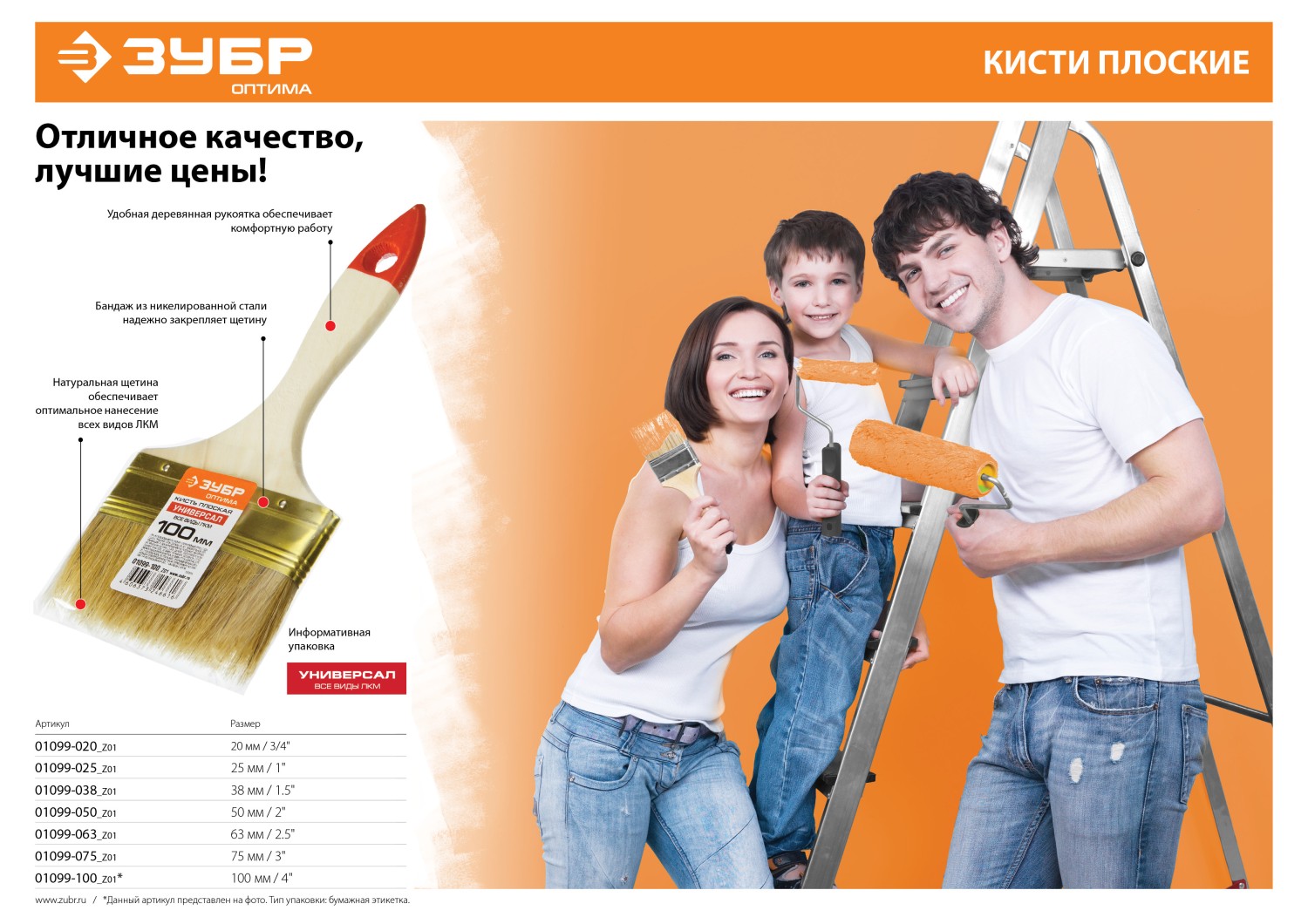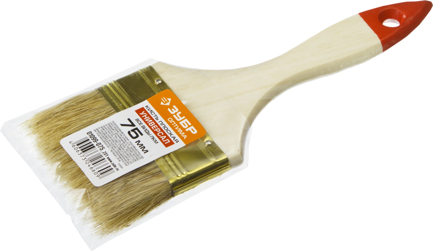 ЗУБР 75 мм, 3″, светлая натуральная щетина, деревянная ручка, плоская кисть (01099-075)