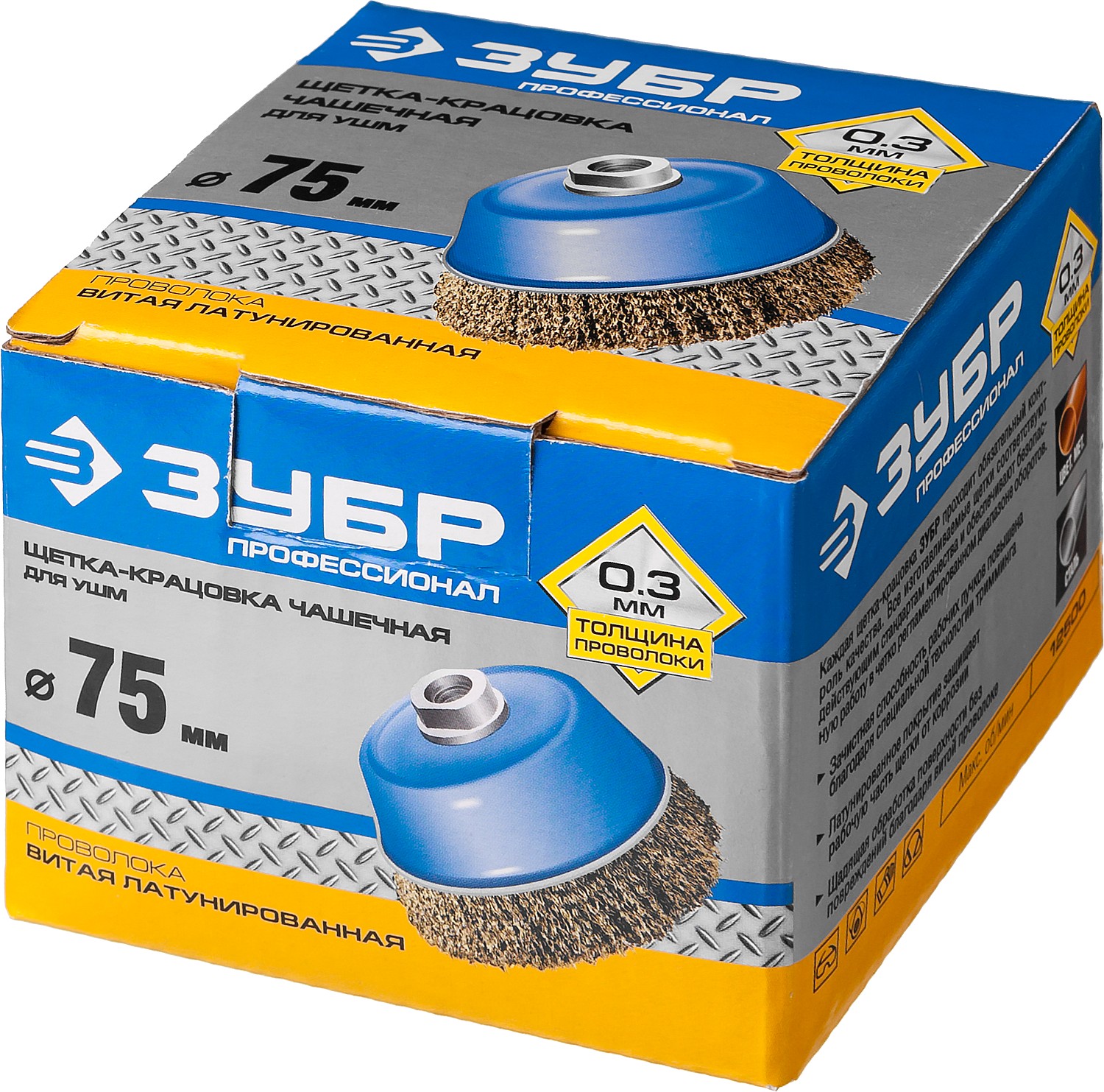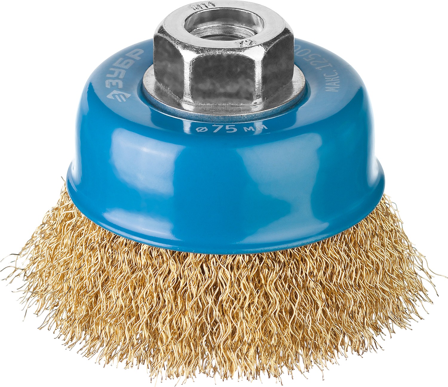 ЗУБР 75 мм, витая стальная латунированная проволока 0.3 мм, чашечная щетка-крацовка для УШМ, Профессионал (3526-075)