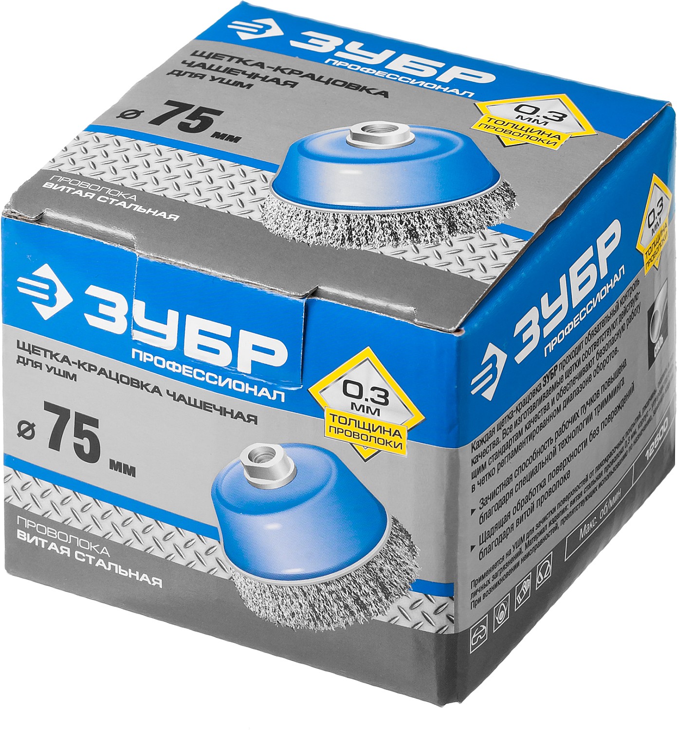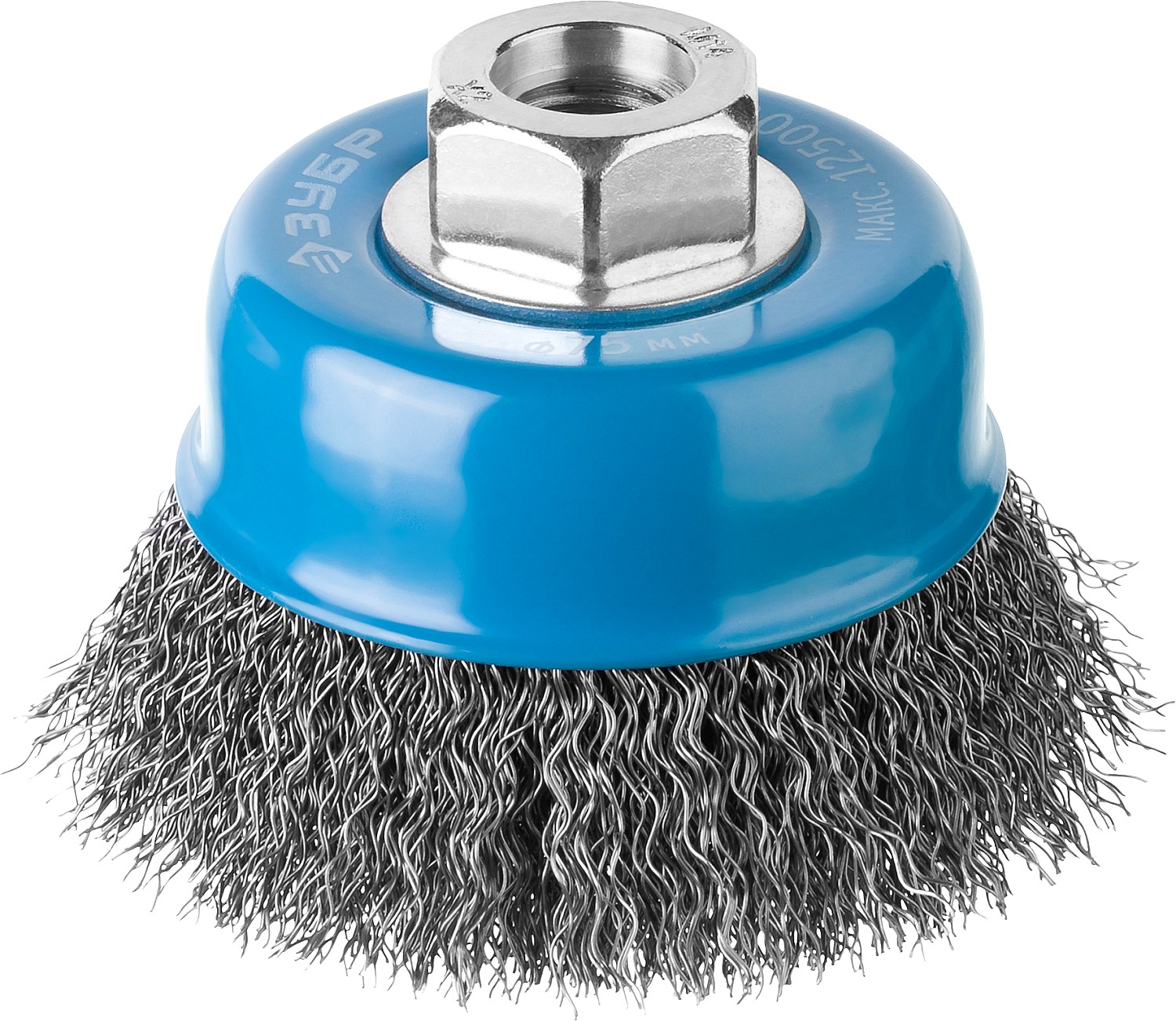 ЗУБР 75 мм, витая, стальная проволока 0.3 мм, чашечная щетка-крацовка для УШМ, Профессионал (35261-075)