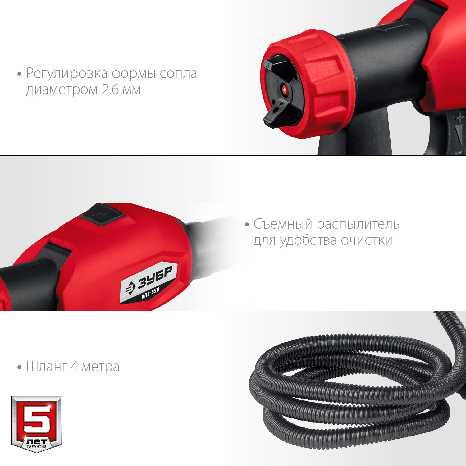 - Регулировка формы сопла для горизонтальной и вертикальной окраски, а также для труднодоступных поверхностей
