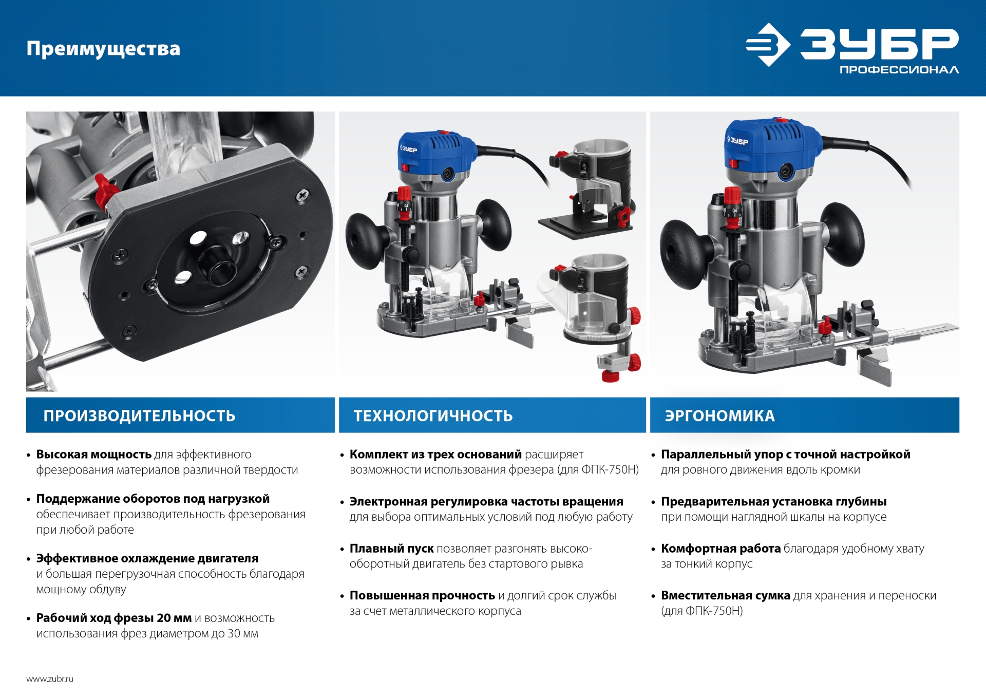- Рабочий ход фрезы 20 мм и возможность использования фрез диаметром до 30 мм