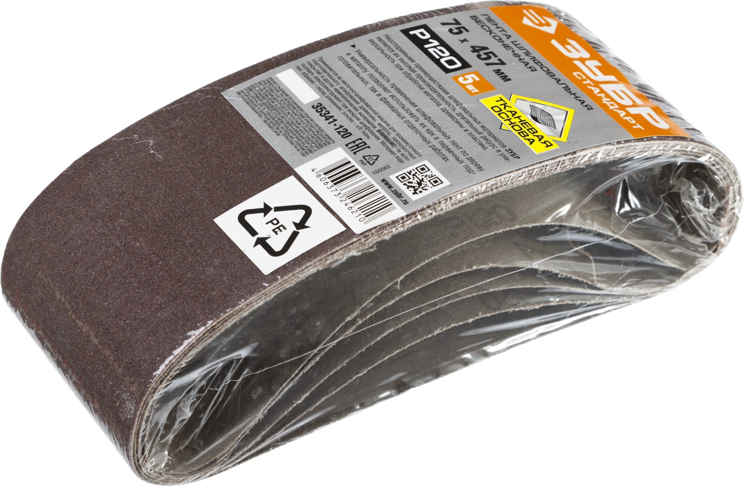 ЗУБР 75х457 мм, P120, лента шлифовальная СТАНДАРТ, для ЛШМ, 5 шт.