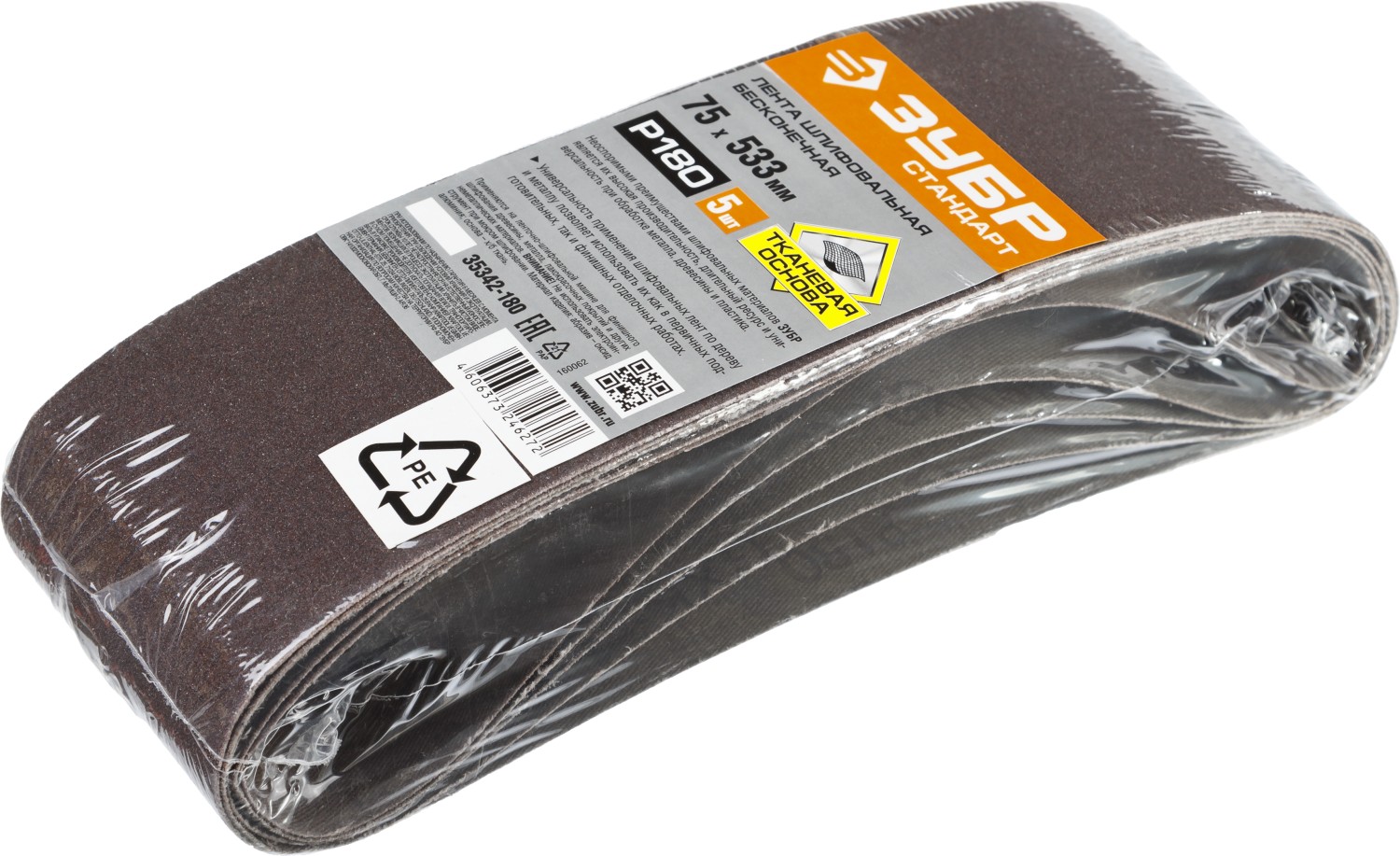 ЗУБР 75х533 мм, P180, лента шлифовальная СТАНДАРТ, для ЛШМ, 5 шт.
