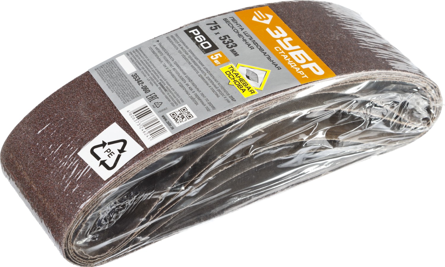 ЗУБР 75х533 мм, P60, лента шлифовальная СТАНДАРТ, для ЛШМ, 5 шт.