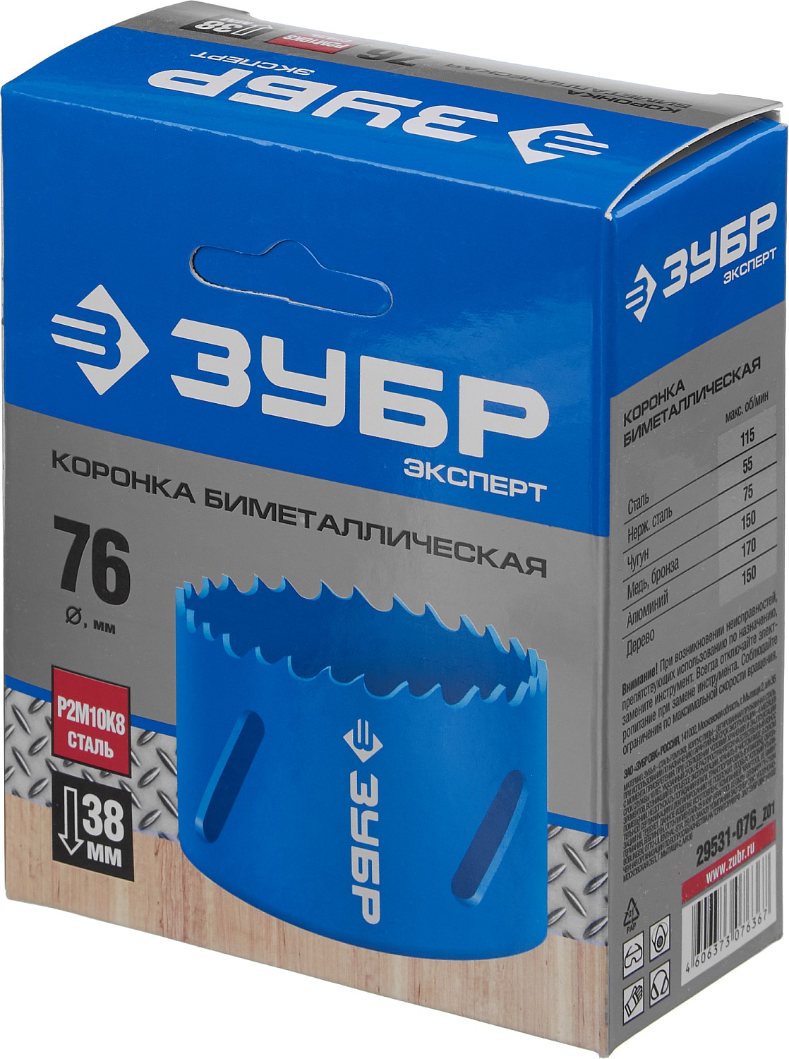 ЗУБР 76 мм, сталь Р6М5, биметаллическая коронка (29531-076)