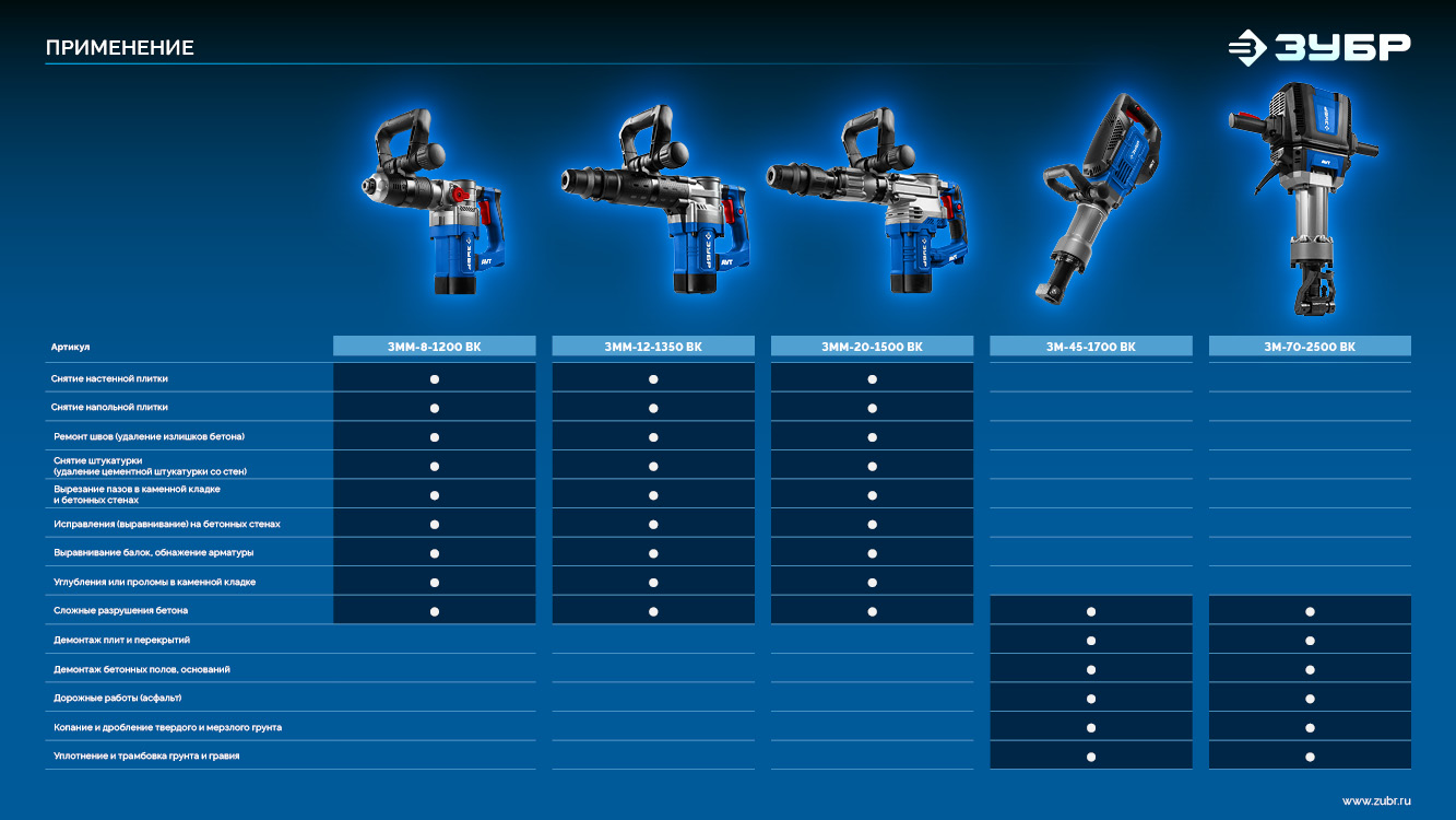 Для демонтажа плитки со стены и пола, удаление излишков бетона из швов, удаления штукатурки со стен, создание пазов, угулублений и проломов в кирпичных и бетонных стенах, выравнивания неровных поверхностей ферм и балок