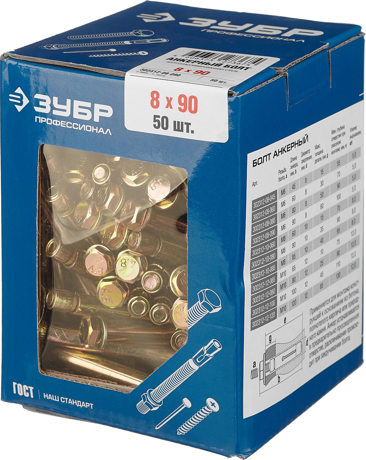 ЗУБР 8 х 90 мм, 50 шт, анкерный болт, Профессионал (302312-08-090)