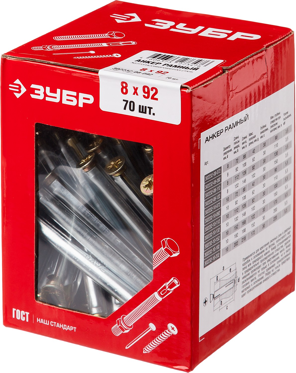 ЗУБР 8 х 92 мм, 70 шт, рамный анкер (302232-08-092)