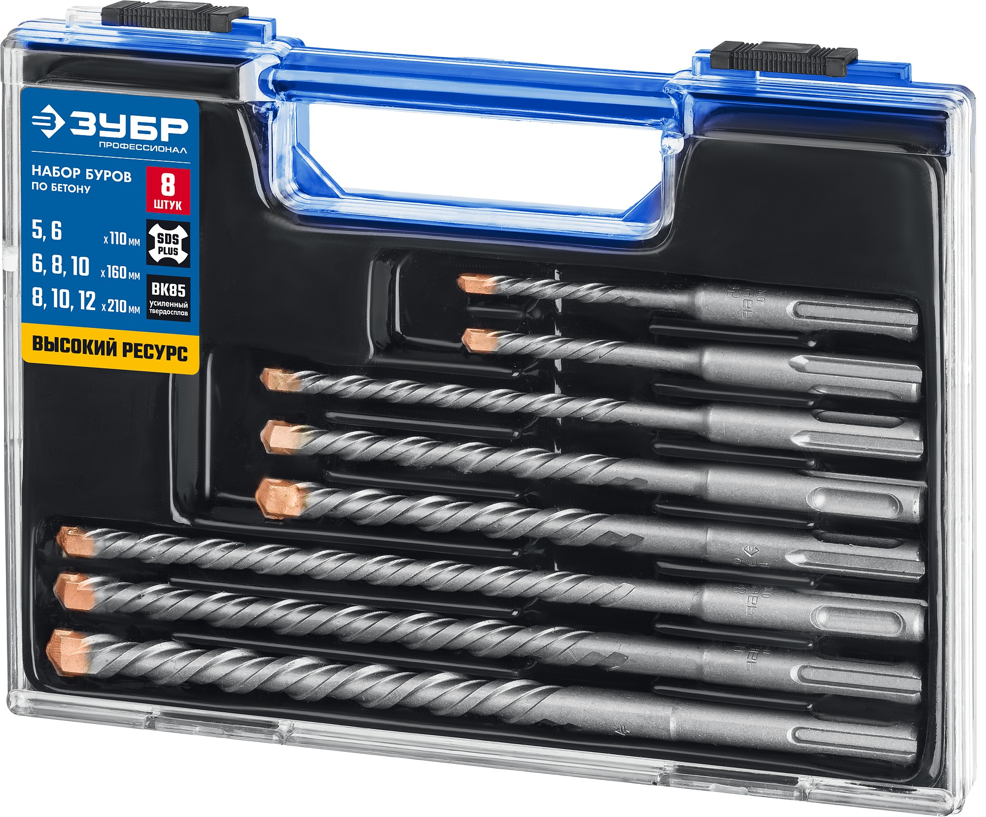 ЗУБР 8 шт: 5/6х110. 6/8/10х160, 8/10/12х210 мм, набор SDS-plus буров, Профессионал (29314-H8)