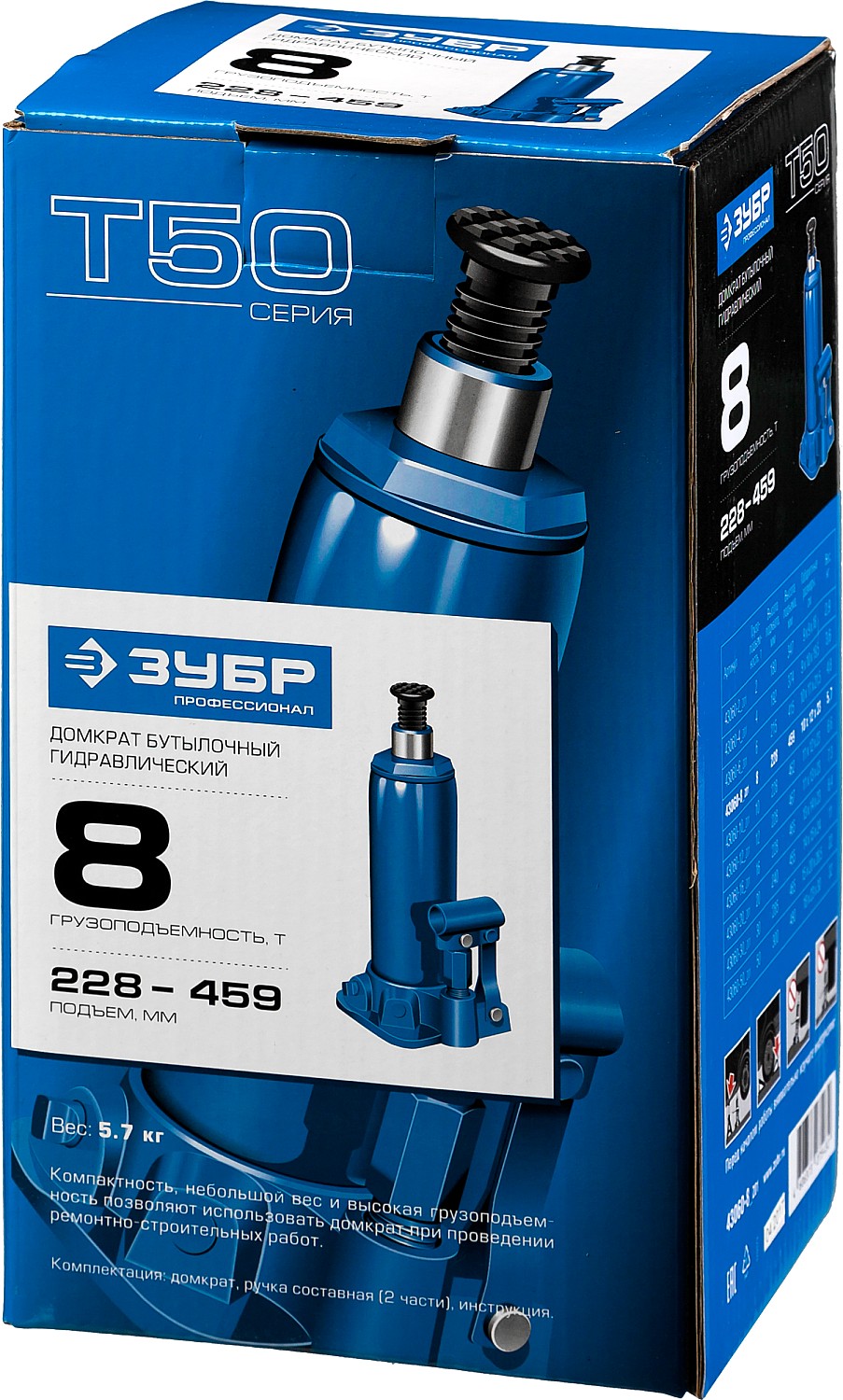 ЗУБР 8 т, 228 - 459 мм, бутылочный гидравлический домкрат, Профессионал (43060-8)