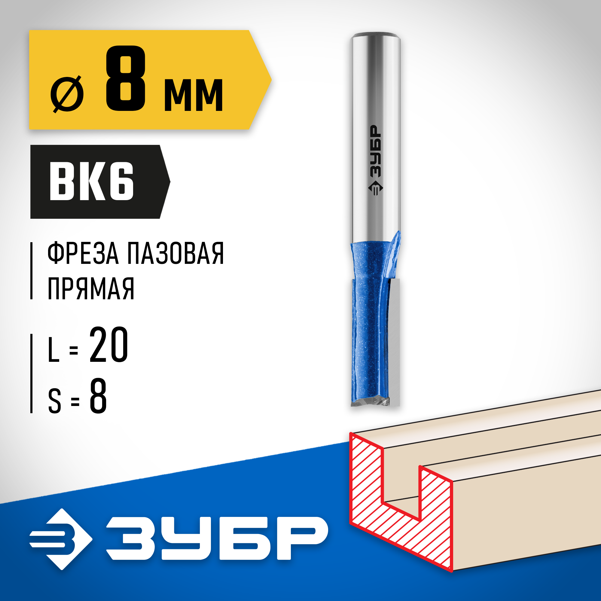 ЗУБР 8 x 19 мм, хвостовик 8 мм, фреза пазовая прямая с нижними подрезателями, Профессионал (28755-8-19)