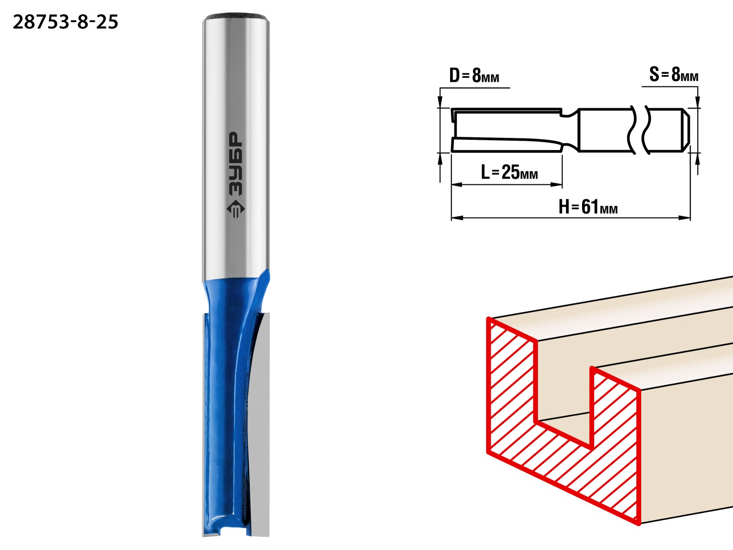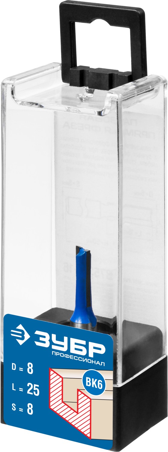 ЗУБР 8 x 25 мм, хвостовик 8 мм, фреза пазовая прямая, Профессионал (28753-8-25)