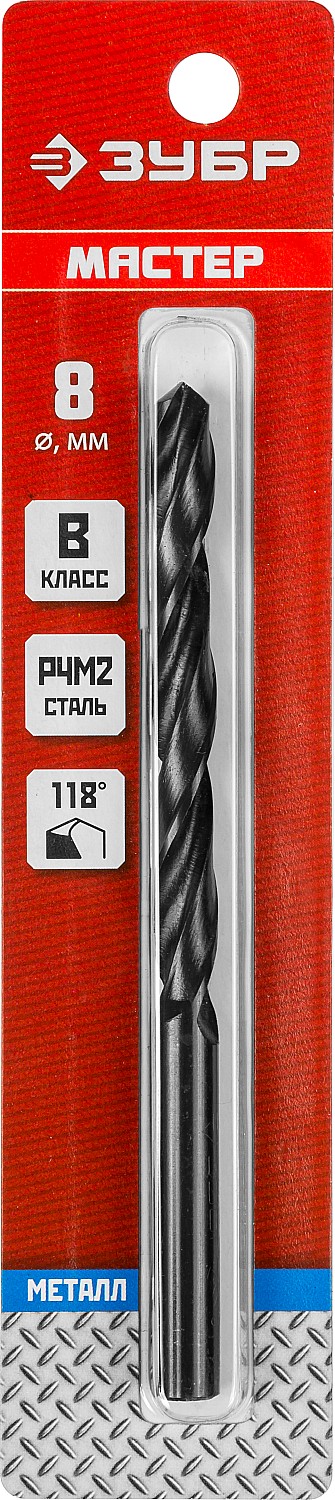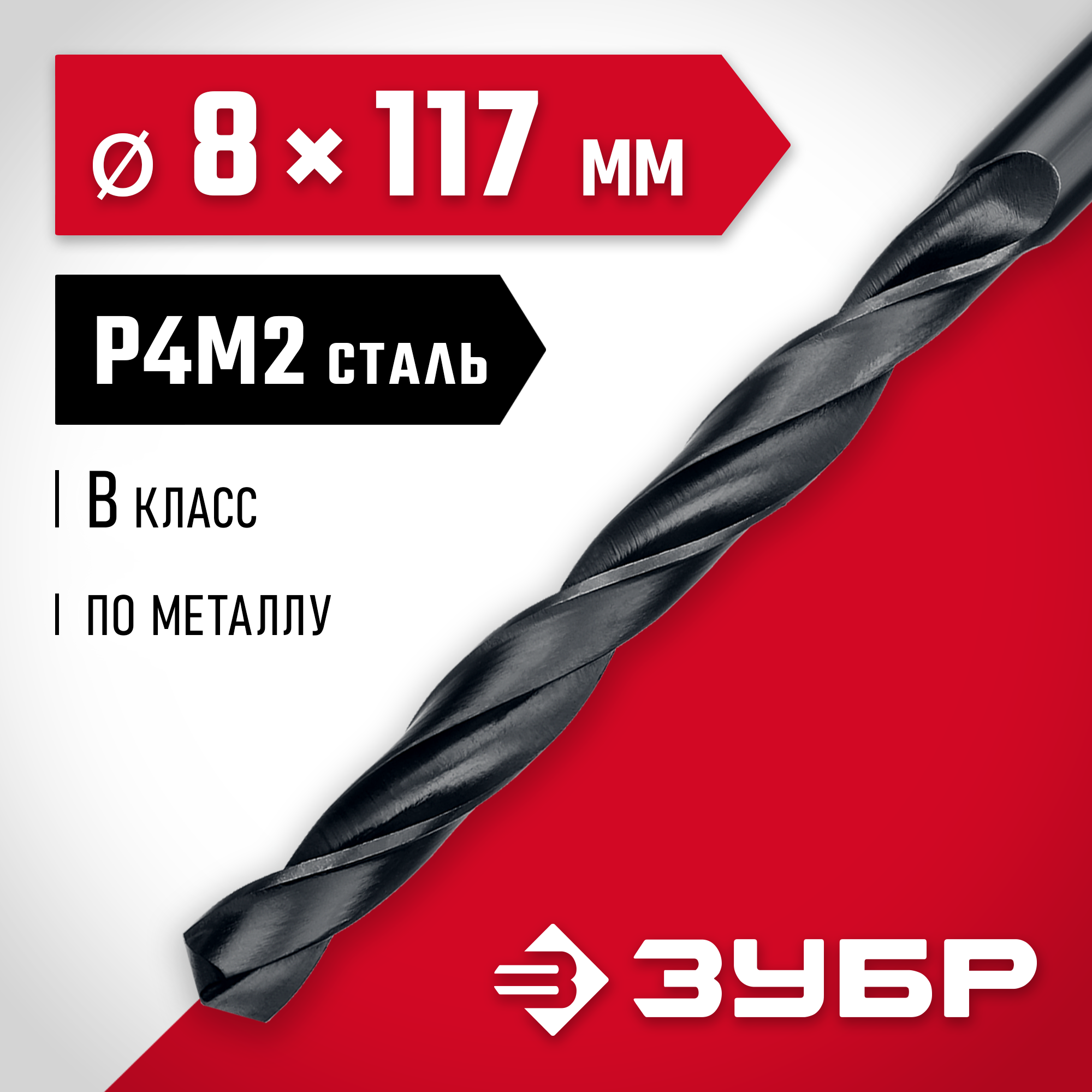 ЗУБР 8.0 х 117 мм, сталь Р4М2, класс В, сверло по металлу (29605-8)