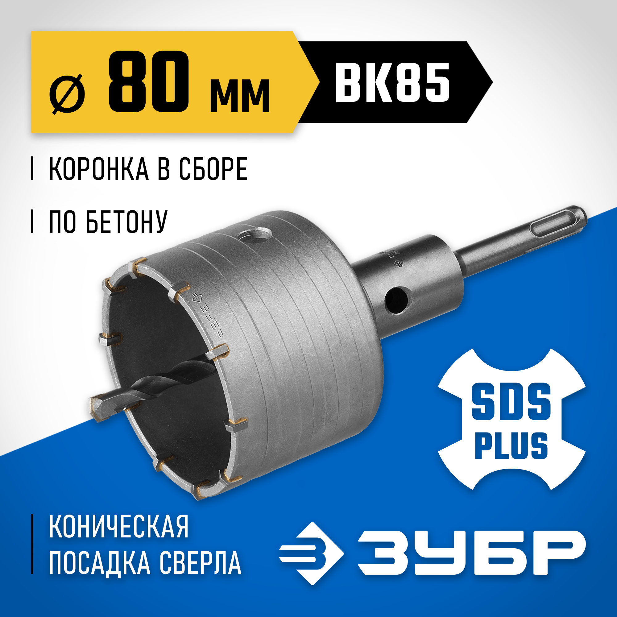 ЗУБР 80 мм, SDS - plus, 10T, коронка по бетону с оснасткой (2918-80)