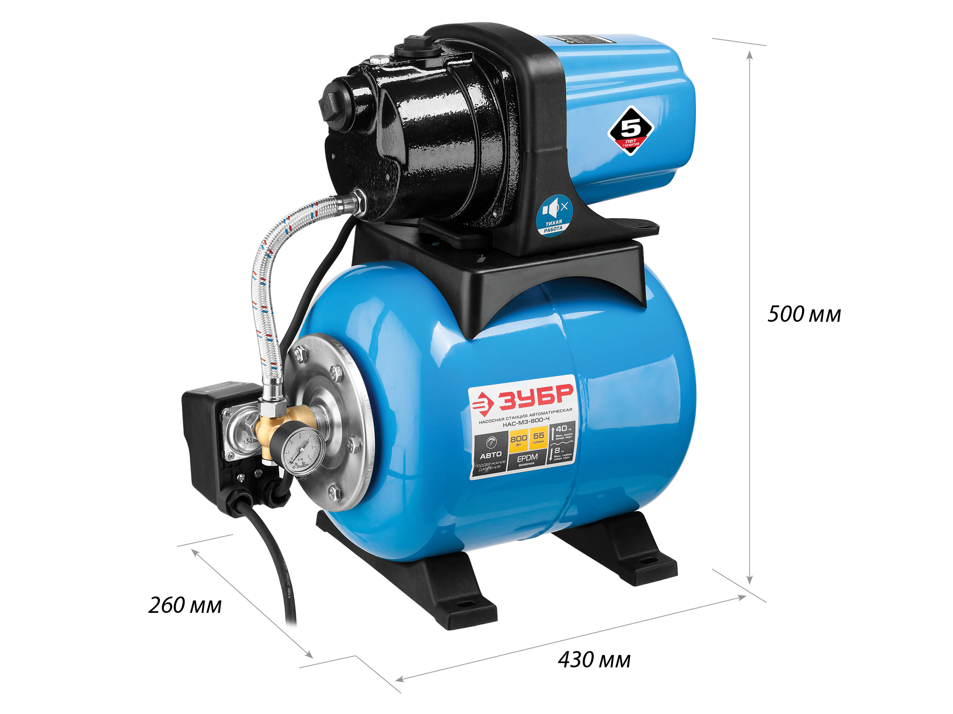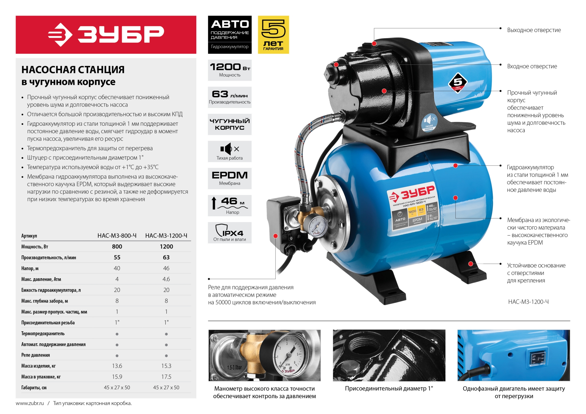 - Автоматическое включение/выключение насоса при изменении давления в магистрали