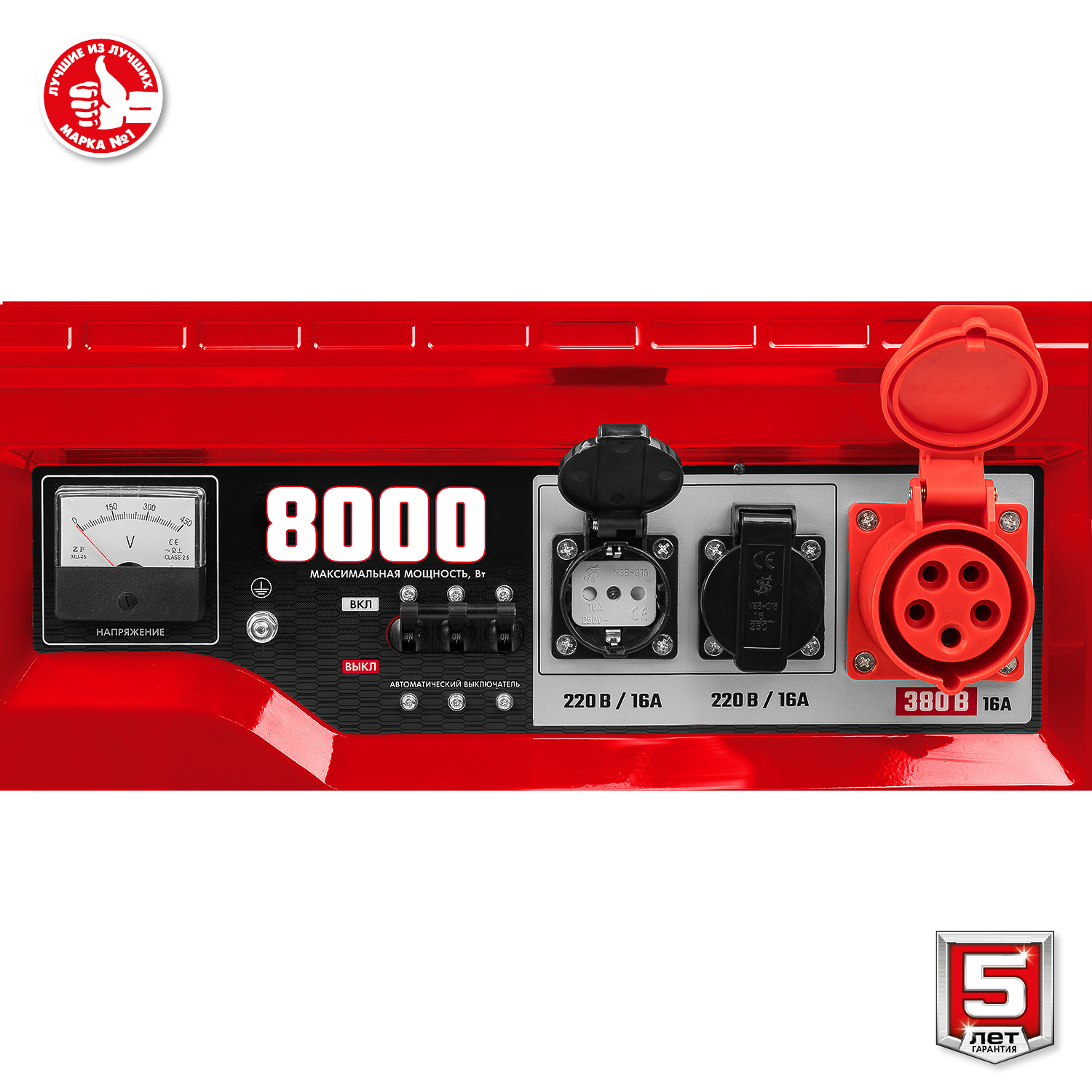 - Два вида вырабатываемого напряжения - 220В 50Гц и 380В 50Гц