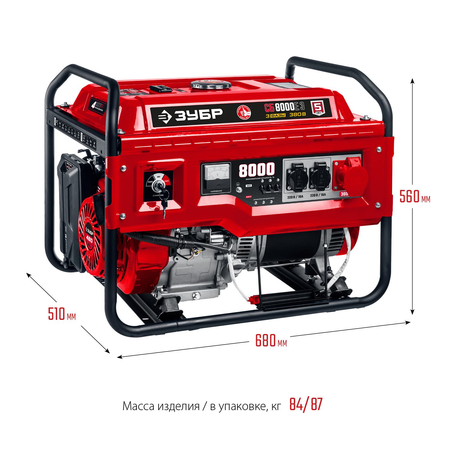 Оптимальный по мощности генератор с возможностью подключения трехфазного потребителя электроэнергии. Электрозапуск генератора избавит Вас от приложения физической силы, а комплект для транспортировки генератора упрощает его перемещение. Аккумуляторная батарея не входит в комплект поставки. Емкость батареи не менее 14 А*ч.