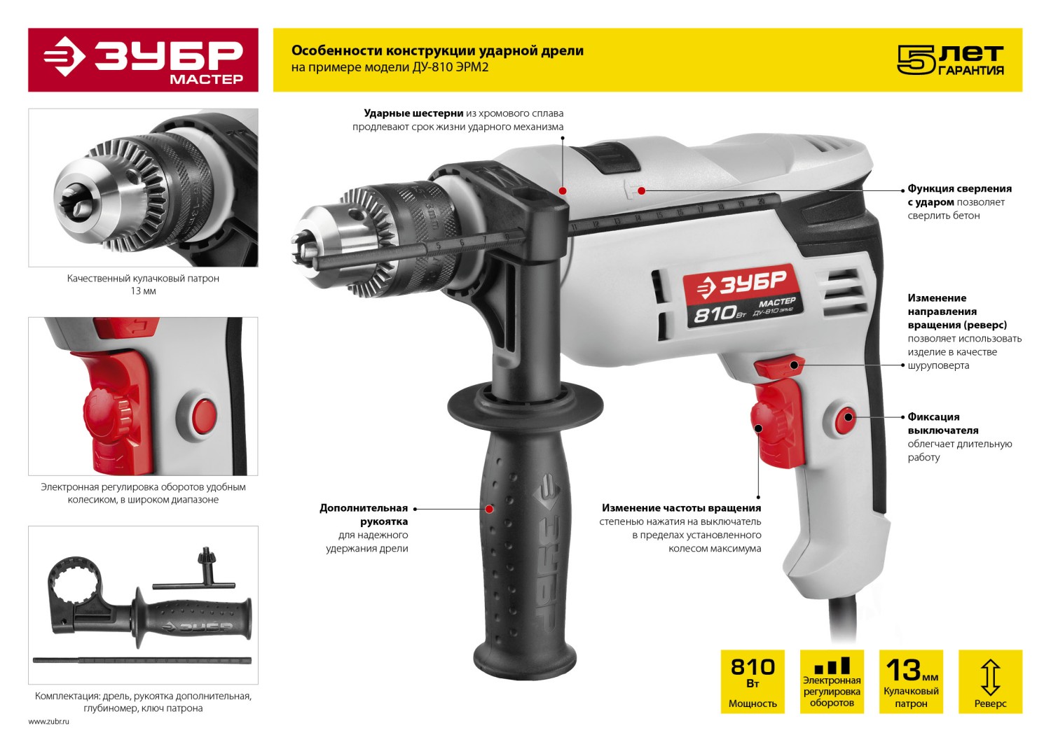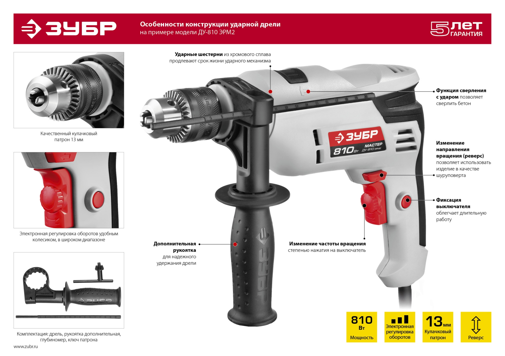 - Качественный кулачковый патрон для насадок диаметром до 13 мм